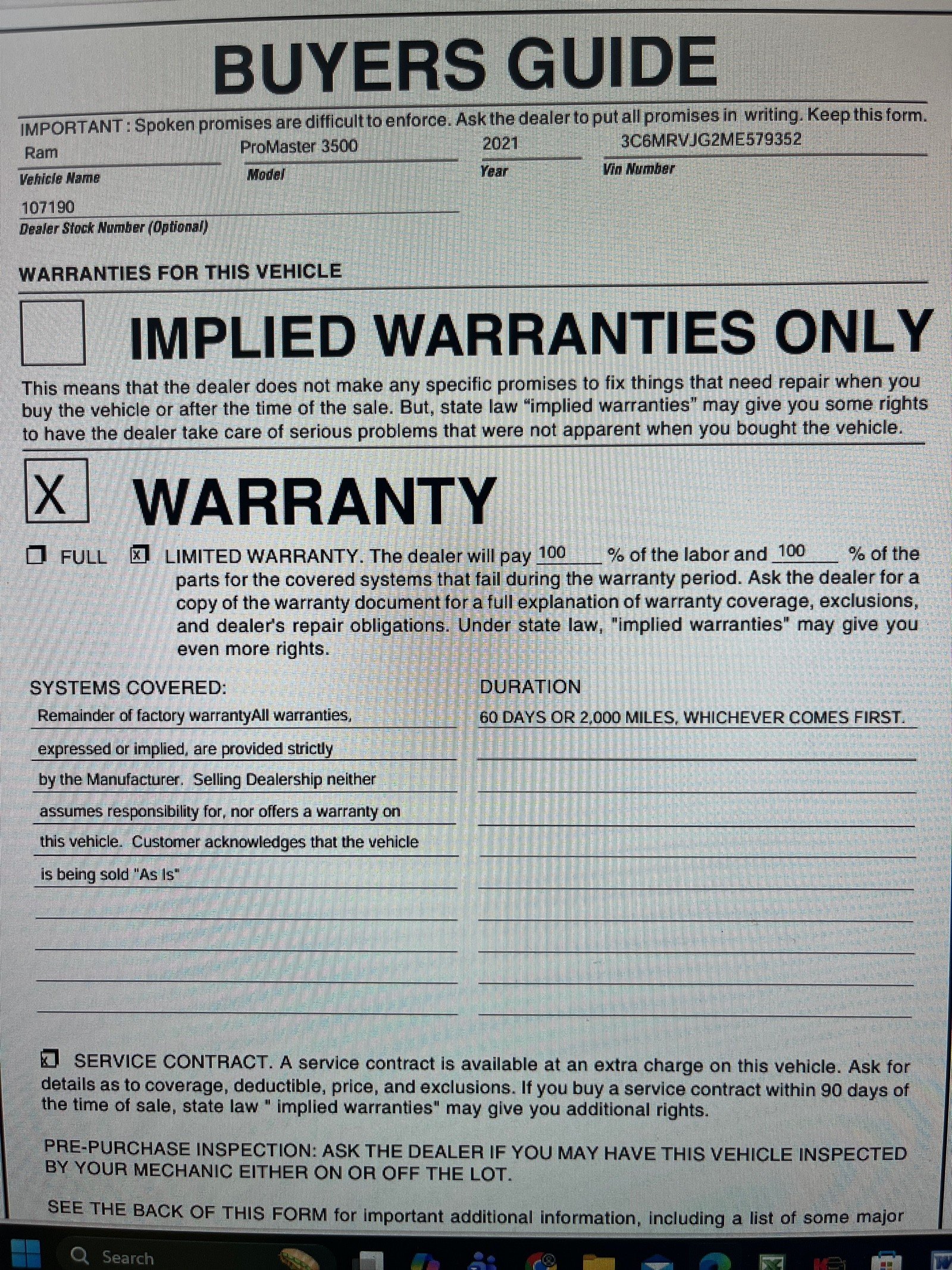 Used 2021 Ram ProMaster 3500