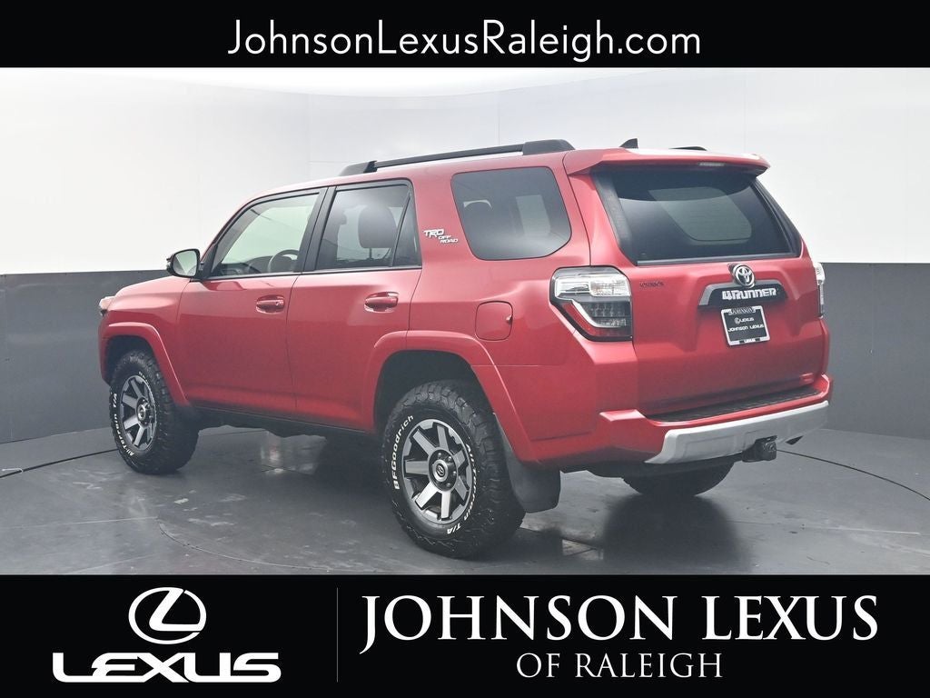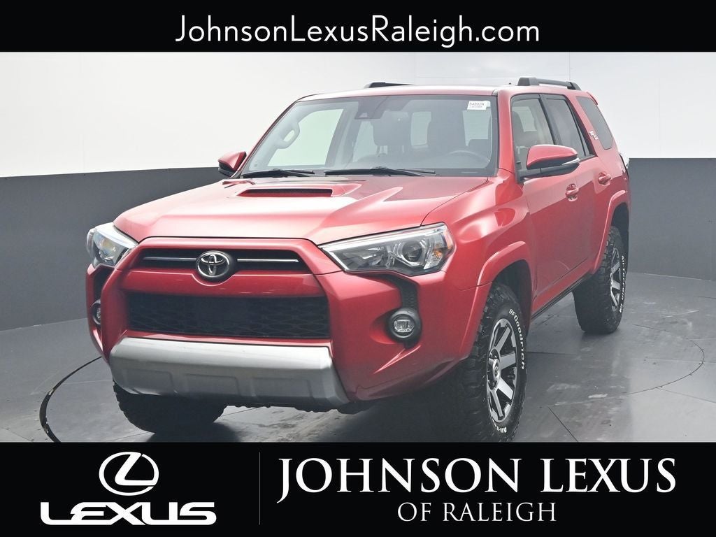 Embark on every adventure with confidence in this 2021 Toyota 4Runner TRD Off-Road Premium with 88,812 miles--a rugged, reliable SUV built for those who live life beyond the pavement. The TRD Off-Road Premium trim enhances capability with Toyota's legendary durability, while offering elevated comfort and technology for daily driving. Inside, you'll enjoy heated front seats and a power moonroof that brings fresh air and sunlight into every trip. Stay connected and in control with built-in navigation, plus seamless smartphone integration through Apple CarPlay and Android Auto. Whether you're exploring backcountry trails or cruising through the city, this 4Runner delivers a smooth, confident ride with the off-road prowess its famous for. With its tough exterior, spacious interior, and impressive feature set, this 2021 4Runner TRD Off-Road Premium is the ideal blend of adventure-ready capability and everyday practicality. Don't miss your chance to own an iconic SUV that's built to go the distance. This vehicle is located at Johnson Lexus of Raleigh. Here at Johnson Lexus we price our cars online aggressively to the market to ensure you not only get a great car but also a great price. Come see us for a hassle free purchase experience and find out why so many customers have made Johnson Lexus their only destination to buy a car!