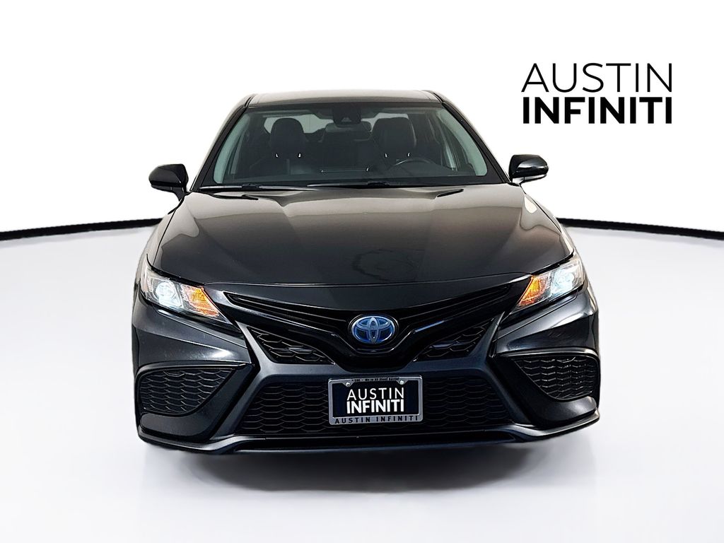 The 2021 Toyota Camry Hybrid SE features a 2.5L 4-cylinder hybrid powertrain producing 208 hp, an ECVT, sport-tuned suspension, SofTex-trimmed seats, and standard Toyota Safety Sense 2.5+ (pre-collision, lane departure, radar cruise, auto high beams). Key specs include great fuel economy (around 51/53 city/highway MPG), front-wheel drive, and modern tech like Apple CarPlay/Android Auto, all designed for efficiency and sporty handling. This vehicle is equipped with our Austin INFINITI Protection Package $999 -Battery4Life: Ensuring you never have to worry about unexpected battery issues (Gasoline Only) OR -PDS Premier Defense: 1-Year Exterior Paint Protection Preserving the finish with an extra layer of durability against the elements!