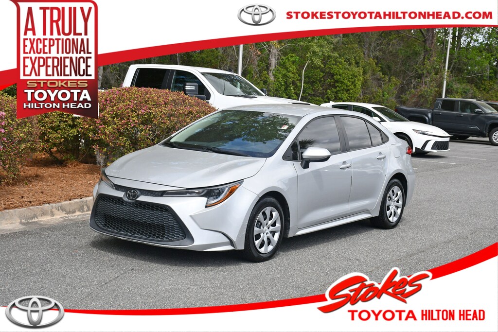 Stokes Toyota Hilton Head 2021 Toyota Corolla LE in Classic Silver Metallic, Factory Equipped With. CARFAX One-Owner. Professionally Serviced and Detailed for your Peace of Mind. CALL US TODAY FOR MORE DETAILS OR TO SCHEDULE A TEST DRIVE AT 843.815.0240 OR VISIT US ON THE WEB AT WWW.STOKESTOYOTAHILTONHEAD.COM OR VISIT US AT 100 FORDING ISLAND ROAD, BLUFFTON SC 29910. Stokes Kia is dedicated to your satisfaction before, during, and after your purchase. We'll go the extra mile to take care of you.