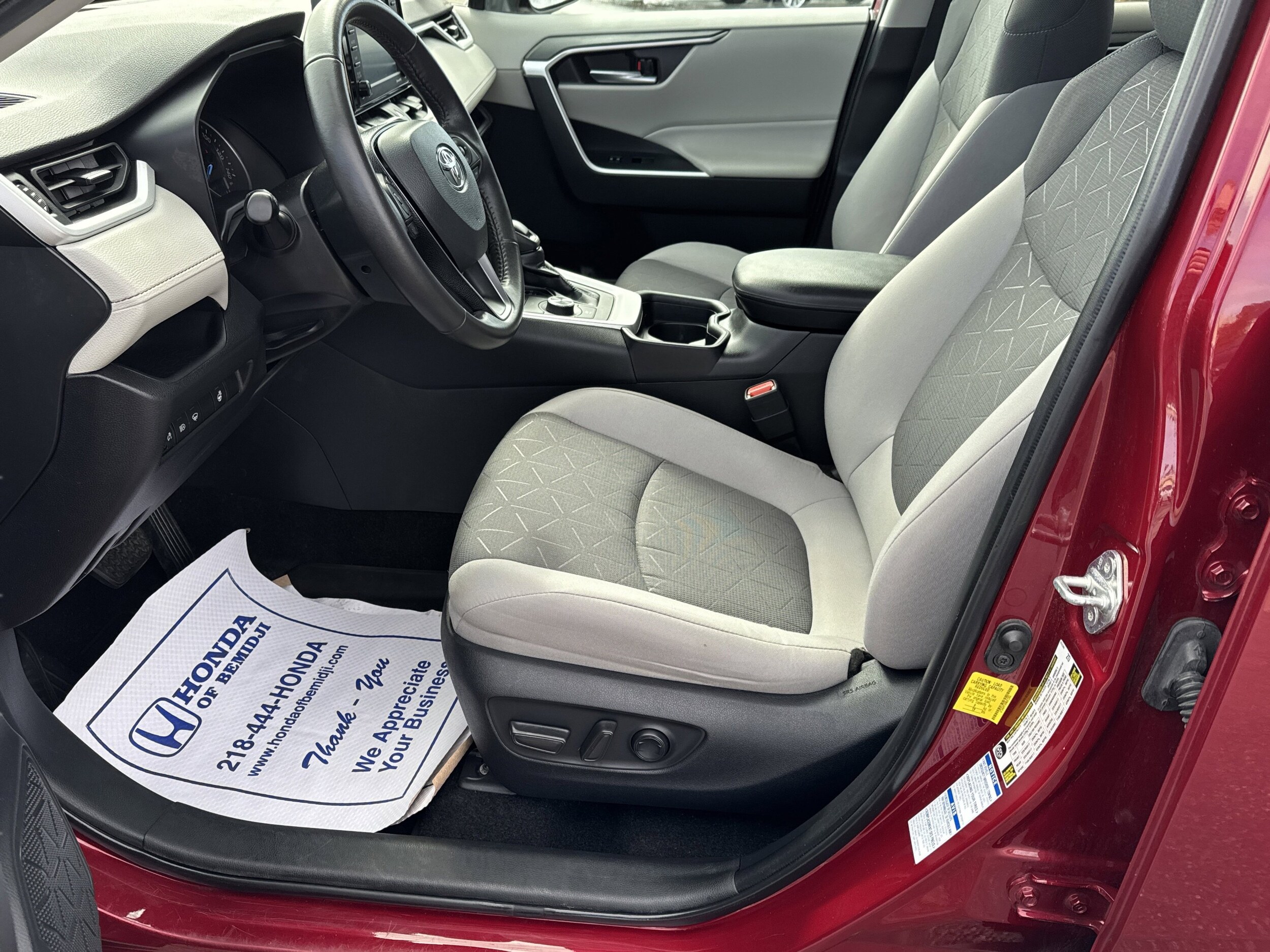 This used 2021 Toyota RAV4 is available at Honda of Bemidji. It features a hybrid powertrain, all-wheel drive, and a comfortable interior with premium cloth seating. The vehicle is equipped with advanced safety features and a suite of technology for convenience and connectivity. Please contact the dealership for more information or to schedule a test drive.