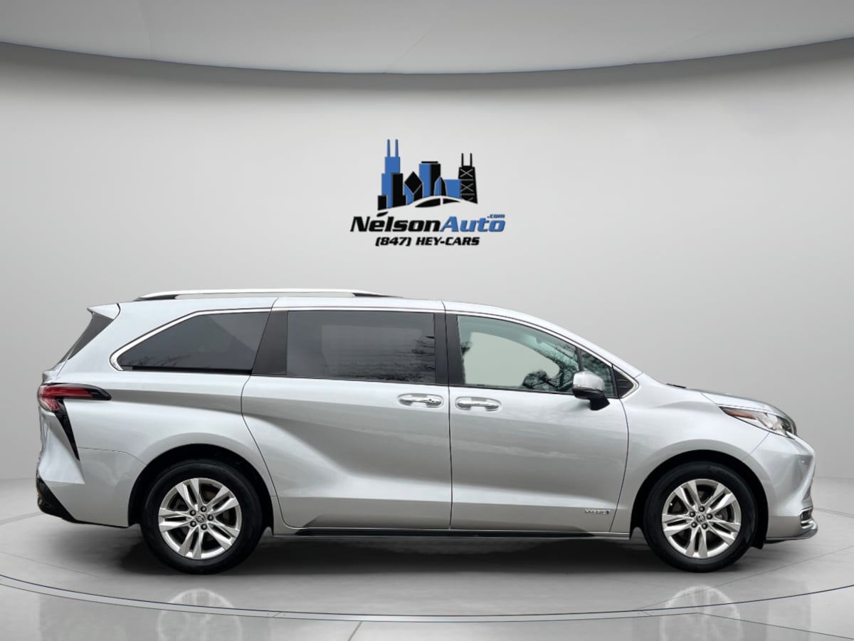 Our stylish 2021 Toyota Sienna Limited Minivan is a premium family machine that masters the road in Celestial Silver Metallic! Motivated by a 2.5 Liter 4 Cylinder and 3 Electric Motors offering a combined 245hp paired to an eCVT for better fuel economy with impressive power. This Front Wheel Drive minivan also has composed handling and sees nearly 36mpg on the highway with a surprisingly dramatic design. Our Sienna's flowing lines will turn heads and are set off by chrome accents, LED lighting, fog lamps, a sunroof, and alloy wheels. For family-friendly convenience, hands-free power-sliding doors are standard on both sides. Roomy and refined, our Limited cabin indulges you with leather heated/ventilated power front seats, second-row captain's chairs, a Split & Stow back row, a leather-wrapped steering wheel, quad-zone automatic climate control, and the Driver Easy Speak in-cabin PA system. Stay on course with Dynamic Navigation and stay connected with a 9-inch touchscreen, Apple CarPlay/Android Auto compatibility, WiFi/Alexa integration, Bluetooth Connection.