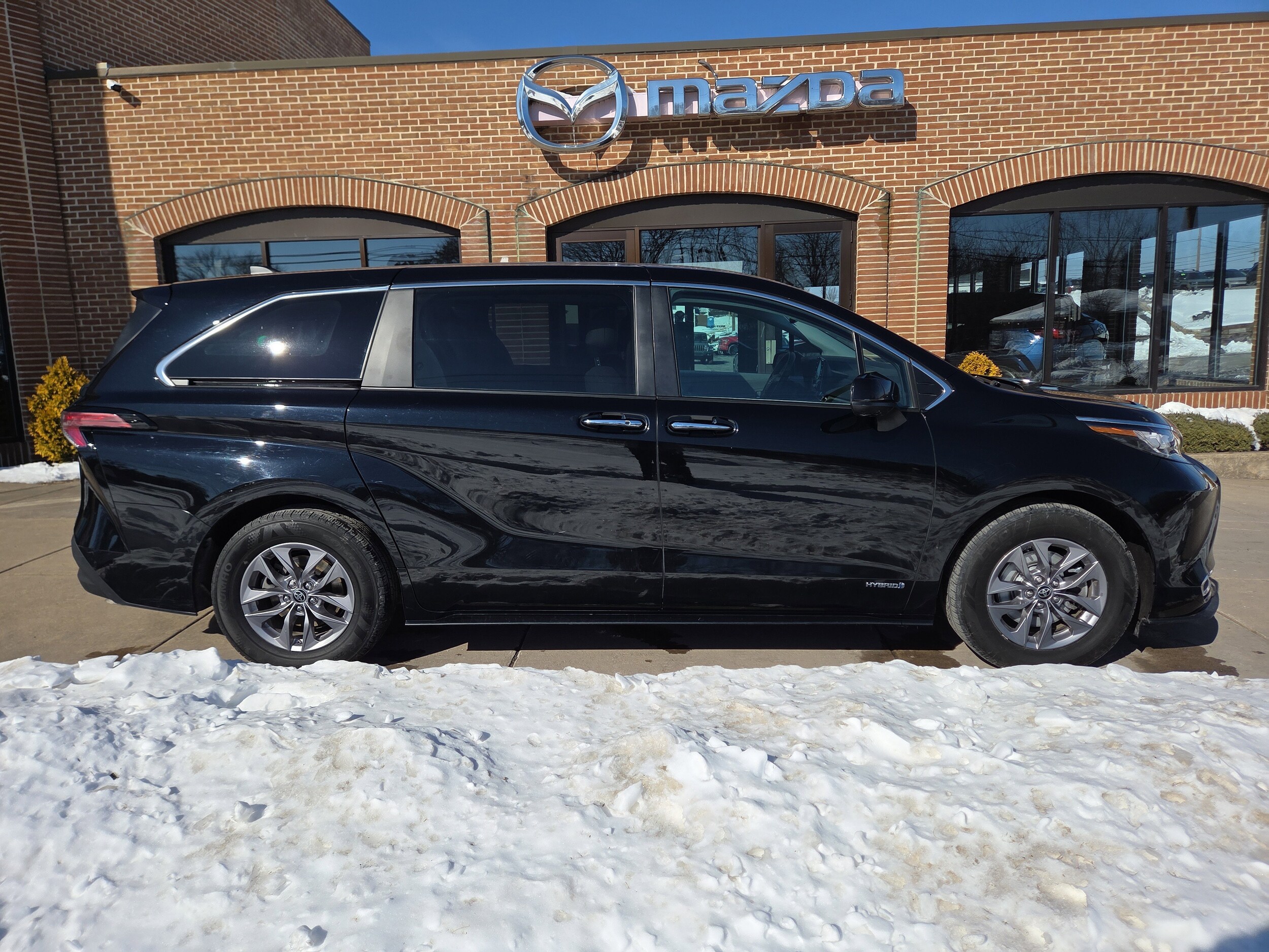 Our incredibly versatile One Owner, Accident Free 2021 Toyota Sienna XLE AWD Minivan makes its presence known in Midnight Black Metallic! Powered by a 2.5 Liter 4 Cylinder and 3 Electric Motors offering a combined 245hp tethered to an eCVT for excellent strength and efficiency. This All Wheel Drive minivan achieves nearly 36mpg on the highway with sure-footed handling and easy maneuverability. Our Sienna XLE also shows its swagger with LED lighting, fog lamps, and a sunroof, while the hands-free power-sliding side doors bring fantastic convenience. Your family's comfort comes first in our XLE cabin that's easy to reconfigure to meet your needs. You'll especially appreciate the SofTex heated power front seats, second-row captain's chairs, a Split & Stow back row, quad-zone automatic climate control, and high-tech amenities. Commuting or car-pooling, intelligent features like a 9-inch touchscreen, Apple CarPlay/Android Auto, WiFi/Amazon Alexa compatibility, Bluetooth, and an eight-speaker sound system can make your life less stressful. Additional peace of mind is provided by a backup camera, a blind-spot monitor, and Toyota Safety Sense driver-assistance measures including automatic braking, lane-keeping assistance, and adaptive cruise control. Our Sienna XLE is engineered for families on the go, just like yours! Save this Page and Call for Availability. We Know You Will Enjoy Your Test Drive Towards Ownership!