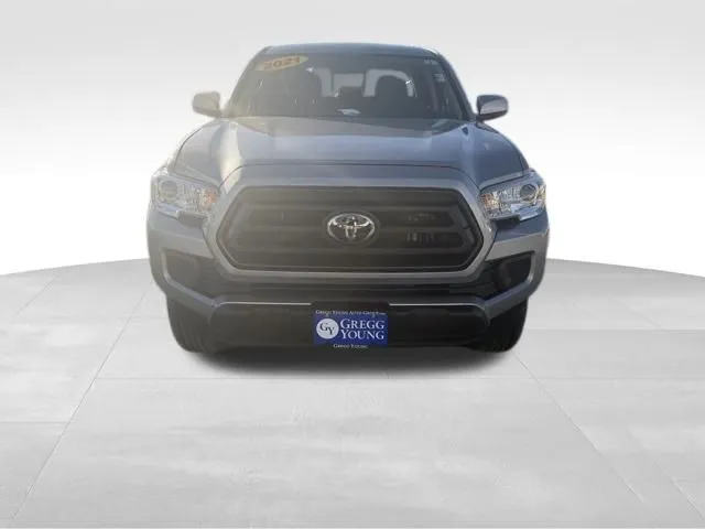 Discover the 2021 Toyota Tacoma, a versatile and dependable pickup truck that combines rugged performance with modern technology. With just over 5,300 miles, this used model boasts a sleek Silver Sky Metallic exterior and a comfortable gray interior, making it an attractive choice for both work and leisure. Powered by a 3.5-liter V6 engine delivering 278 horsepower and 265 lb-ft of torque, this Tacoma offers impressive capability and smooth handling through its 6-speed automatic transmission and 4WD drivetrain. Designed for adventure, it features a tow package that enhances hauling capacity and satellite radio readiness for entertainment on the go. Modern amenities include Apple CarPlay, Bluetooth connectivity, adaptive cruise control, and a Wi-Fi hotspot, providing a seamless driving experience. Whether navigating city streets or tackling off-road trails, this Tacoma is equipped to meet your needs with style and reliability. The Tacoma offers essential safety features such as dual front knee airbags and active head restraints to enhance occupant protection. Additionally, 4-wheel anti-lock brakes (ABS) provide reliable stopping power, especially on challenging surfaces, ensuring confidence behind the wheel in diverse driving conditions. The Tacoma is packed with advanced entertainment and connectivity options. It supports smart device app compatibility through Toyota Connected Services, enabling seamless integration with your smartphone. Hands-free voice-operated phone calls and a voice-controlled radio enhance convenience, while the touch screen display provides easy access to entertainment options. Amazon Alexa compatibility allows for connected in-car apps, and electronic messaging assistance with a read function helps keep you connected safely. The audio system features six speakers, along with auxiliary inputs for USB and iPod/iPhone devices, delivering high-quality sound for every trip. Performance-wise, the Tacoma features an electronic hi-lo 4WD selector, allowing drivers to switch between high and low ranges for optimal traction in off-road or slippery conditions. Its part-time 4WD system ensures versatility and control, making it a dependable choice for both daily driving and adventurous pursuits.
