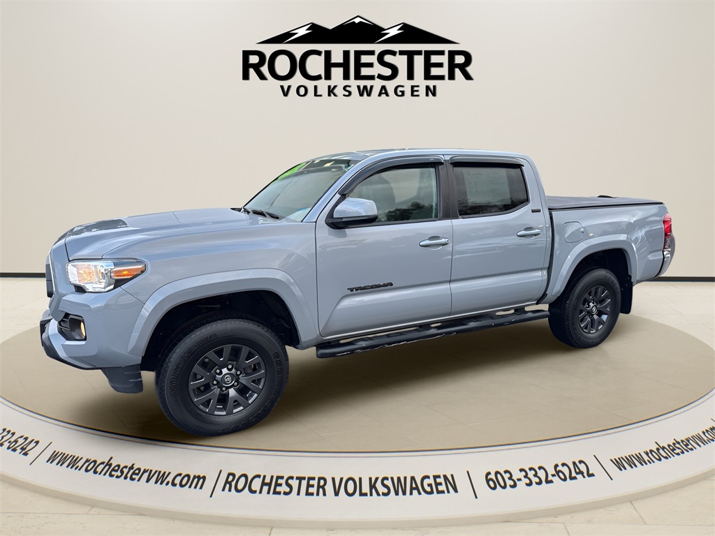Gray 2021 Toyota Tacoma SR5 V6 4D Double Cab 4WD 6-Speed 3.5L V6 PDI DOHC 24V LEV3-ULEV70 278hp. For a hassle free, no pressure sales experience, visit Rochester VW. Our dealership offers a "commission free zone", and employs a team of customer friendly Sales professionals to assist in satisfying all your transportation needs! Call our showroom today at (603) 332-6242, and speak with one of our Sales professionals to schedule the test drive of your next pre-owned vehicle!