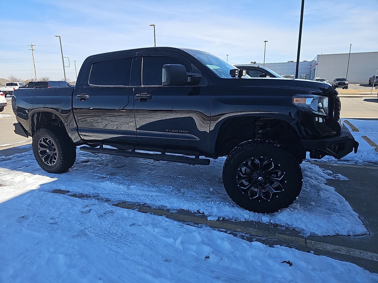 Recent Arrival! 4WD, Sr5 Cloth. Clean CARFAX. This 2021 Toyota Tundra SR5 in Midnight Black comes with the following features: i-Force 5.7L V8 DOHC 32V LEV 6-Speed Automatic Electronic 4WD 4WD, Sr5 Cloth, 18 Styled Steel Wheels, 3-Passenger Front Bench Seat, 38 Gallon Fuel Tank Capacity, 4-Wheel Disc Brakes, 4.30 Axle Ratio, 9 Speakers, ABS brakes, Air Conditioning, AM/FM radio: SiriusXM, Anti-Theft Immobilizer w/Alarm, Apple CarPlay/Android Auto, Auto High-beam Headlights, Auto-Dimming Rear-View Mirror, Auto-dimming Rear-View mirror, Black Wheel Locks, Brake assist, Color-Keyed Power Heated Exterior Mirrors, Compass, Deck Rail System, Delay-off headlights, Driver door bin, Driver vanity mirror, Dual front impact airbags, Dual front side impact airbags, Electronic Stability Control, Emergency communication system: Safety Connect with 1-year trial, Exterior Parking Camera Rear, Fabric Seat Trim, Front anti-roll bar, Front Bucket Seats, Front Center Armrest w/Storage, Front Door Smart Key System, Front fog lights, Front reading lights, Front wheel independent suspension, Fully automatic headlights, Garage door transmitter: HomeLink Transceiver", Heated door mirrors", HomeLink Universal Transceiver", Illuminated entry", Knee airbag", Low tire pressure warning", "Occupant" sensing airbags", "Occupant" and "Occupant" and "Occupant" and "Occupant" and "Occupant" and "Occupant" and "O Occupant" and "O Occupant" and "O Occupant" and "O Occupant".