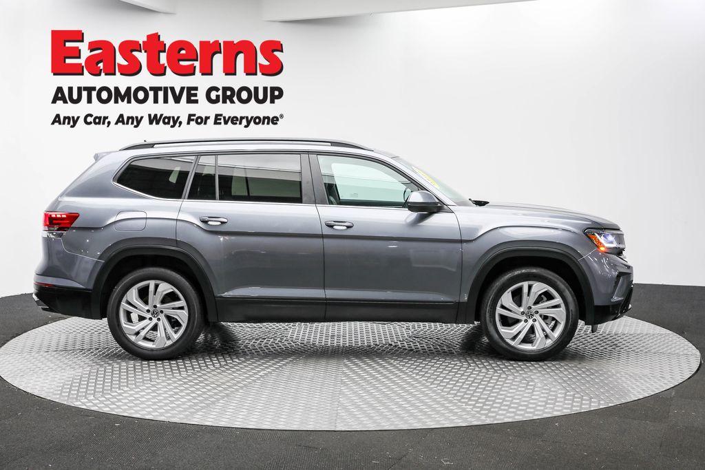 2021 Volkswagen Atlas 3.6L V6 SE w/Technology Platinum Gray Metallic FWD 8-Speed Automatic with Tiptronic Auto-Dimming Rearview Mirror, Universal Garage Door Opener, 2nd-Row Dual Captain's Chairs, 3rd row seats: split-bench, Automatic temperature control, Brake assist, Exterior Parking Camera Rear, Forward collision: FCW w/Autonomous Emergency Braking mitigation, Front dual zone A/C, Front fog lights, Heated door mirrors, Heated front seats, Heavy Duty Trunk Liner w/VW CarGo Blocks, Panoramic Sunroof, Panoramic Sunroof Package, Perforated V-Tex Leatherette Seating Surfaces, Power door mirrors, Power driver seat, Power Liftgate, Privacy Cover, Rain sensing wipers, Rear air conditioning, Rear window defroster, Rear window wiper, Remote keyless entry, Rubber Mats Kit - Captain's Chairs, Speed control, VW Care, Wheels: 20" 5-Spoke Silver Alloy. Odometer is 46981 miles below market average! Clean CARFAX. CARFAX One-Owner. Easterns Automotive Group has 11 locations that has sold thousands of used cars in the Maryland, DC, and Virginia communities for over the past 35 years. Every Easterns vehicle has passed a rigorous Multi-Point Quality Certification, so you can buy with confidence. Start your purchase online to save time by visiting Easterns.com... Any Car, Any Way, For Everyone.