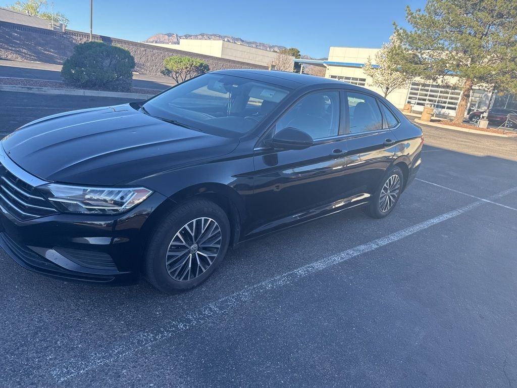 Recent Arrival! Black Uni 2021 Volkswagen Jetta 1.4T SE FWD 8-Speed Automatic 1.4L TSI Titan Black Cloth, ABS brakes, Alloy wheels, Electronic Stability Control, Front dual zone A/C, Heated door mirrors, Heated front seats, Illuminated entry, Low tire pressure warning, Remote keyless entry, Traction control. 29/39 City/Highway MPG