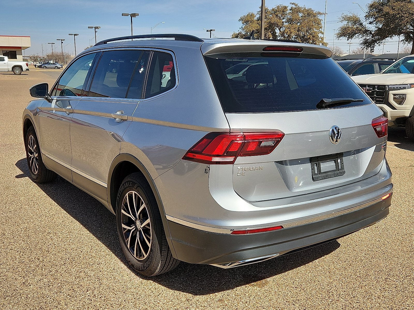 Recent Arrival! This 2021 Volkswagen Tiguan 2.0T SE in Pyrite Silver Metallic comes with the following features: 2.0L TSI DOHC 8-Speed Automatic with Tiptronic AWD Panoramic Sunroof Package, AWD, 4-Wheel Independent Suspension, ABS brakes, Active Cruise Control, Alloy wheels, Automatic temperature control, Compass, Delay-off headlights, Electronic Stability Control, Emergency communication system: VW Car-Net services (capabilities require enrollment or subscription), Exterior Parking Camera Rear, Forward collision: FCW w/Autonomous Emergency Braking mitigation, Four wheel independent suspension, Front Bucket Seats, Front dual zone A/C, Fully automatic headlights, Heated door mirrors, Heated Front Comfort Seats, Heated front seats, Illuminated entry, Leather Shift Knob, Low tire pressure warning, Outside temperature display, Perforated V-Tex Leatherette Seating Surfaces, Power door mirrors, Power driver seat, Power steering, Power windows, Radio: MIB3 Composition Media AM/FM/HD, Remote keyless entry, Security system, Spoiler, Steering wheel mounted audio controls, Tachometer, Telescoping steering wheel, Tilt steering wheel, Traction control, and Turn signal indicator mirrors Panoramic Sunroof Package.