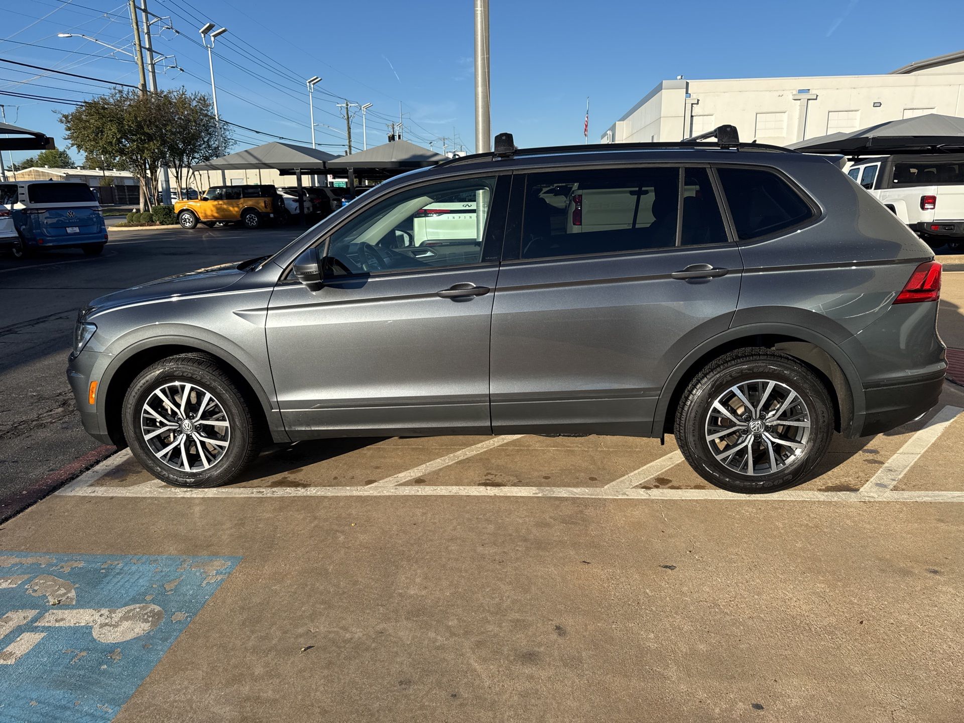 Recently arrived and priced perfectly within the market, this 2021 Volkswagen Tiguan 2.0T S in Platinum Gray Metallic is an exceptional opportunity to enjoy Volkswagen versatility, comfort, and engineering at a tremendous value. Originally priced at $26,820, this Tiguan has been well cared for and now shows 84,124 miles, offering the ideal blend of practicality and refinement for daily driving or family adventures. Under the hood, the Tiguan features a 2.0L TSI DOHC engine paired with an 8-speed automatic with Tiptronic, delivering responsive acceleration and smooth performance. The 4-wheel independent suspension, speed-sensing steering, and 4-wheel disc brakes enhance driving confidence, while VW's renowned engineering ensures a composed and dependable ride. Inside, the Tiguan S stands out with a thoughtfully designed cabin offering flexibility and comfort. This model includes a 3rd-row bench seat, giving you extra passenger capacity when needed-perfect for carpooling, weekend outings, or growing families. Cloth Seating Surfaces, a Front Center Armrest, and split-folding rear seats add to its everyday usability. You'll also appreciate features such as a Rearview Camera, VW Car-Net emergency communications, remote keyless entry, and a user-friendly Composition Color AM/FM radio with 6 speakers. Technology and convenience are built into every drive, with modern essentials like Bluetooth, USB connectivity, a trip computer, a compass, an outside temperature display, and steering-wheel-mounted audio controls. Safety is also a core highlight, with Forward Collision Warning with Autonomous Emergency Braking, Electronic Stability Control, multiple airbags, Brake Assist, and a low tire pressure warning system providing confidence in any driving conditions. The exterior shines in Platinum Gray Metallic with 17" Multi-Spoke 2-Tone Alloy Wheels, heated side mirrors, fully automatic headlights, roof rails, and body-color bumpers, creating a clean, modern, and durable appearance that fits perfectly into both city and suburban environments. At Autobahn Volkswagen in Fort Worth, TX, you'll enjoy market-based pricing, ensuring this Tiguan is priced right within current conditions-no guesswork, no hassle. Our dealership offers a wide selection of Pre-Owned Volkswagen and Audi models, making it easy to find the perfect fit for your needs. We also proudly offer nationwide delivery, so your next vehicle can come straight to your door, wherever you are. For added peace of mind, extended service contracts are available on this Tiguan-just ask your sales associate for details. This well-equipped, recently arrived 2021 Volkswagen Tiguan 2.0T S offers outstanding value, versatility, and Volkswagen quality-dont miss your chance to make it yours.