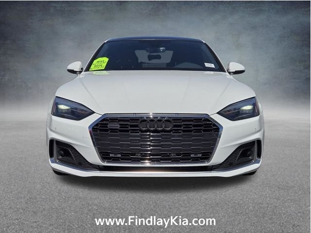 Welcome to Findlay Kia on Sahara Ave in Las Vegas. All of our vehicles are hand picked and inspected for your piece of mind. This Audi A5 Sportback is equipped with the following options: Convenience Package (Alarm System w/Motion Sensors, Audi Advanced Key, Audi Side Assist w/Pre Sense Rear, Auto-Dimming Exterior Mirrors w/Memory, Driver Seat Memory, Heated Steering Wheel, Parking System Plus (Front/Rear Acoustic Sensors), and SiriusXM All Access Service), 10 Speakers, 4-Wheel Disc Brakes, ABS brakes, Air Conditioning, Alloy wheels, AM/FM radio, Anti-whiplash front head restraints, Audi Guard All-Weather Mats, Auto High-beam Headlights, Auto-dimming Rear-View mirror, Automatic temperature control, Brake assist, Bumpers: body-color, Compass, Delay-off headlights, Driver door bin, Driver vanity mirror, Dual front impact airbags, Dual front side impact airbags, Electronic Stability Control, Emergency communication system: Audi connect CARE, Exterior Parking Camera Rear, Four wheel independent suspension, Front anti-roll bar, Front Bucket Seats, Front Center Armrest, Front dual zone A/C, Front fog lights, Front reading lights, Garage door transmitter: HomeLink, Genuine wood console insert, Genuine wood dashboard insert, Genuine wood door panel insert, Heated door mirrors, Heated Front Seats, Heated front seats, Illuminated entry, Knee airbag, Leather Seating Surfaces, Leather Shift Knob, Leather steering wheel, Low tire pressure warning, Occupant sensing airbag, Outside temperature display, Overhead airbag, Overhead console, Panic alarm, Passenger door bin, Passenger vanity mirror, Power adjustable front head restraints, Power door mirrors, Power driver seat, Power Liftgate, Power moonroof, Power passenger seat, Power steering, Power windows, Radio data system, Radio: Audi Sound System, Rain sensing wipers, Rear air conditioning, Rear anti-roll bar, Rear reading lights, Rear seat center armrest, Rear window defroster, Remote keyless entry, Rings Audi Beam, Speed control, Speed-sensing steering, Speed-Sensitive Wipers, Split folding rear seat, Steering wheel mounted audio controls, Tachometer, Telescoping steering wheel, Tilt steering wheel, Traction control, Trip computer, Turn signal indicator mirrors, Variably intermittent wipers, and Wheels: 18" 5-V-Spoke-Y Design. Ibis White 2022 Audi A5 Sportback Premium quattro quattro 7-Speed Automatic S tronic 2.0L 4-Cylinder TFSI.