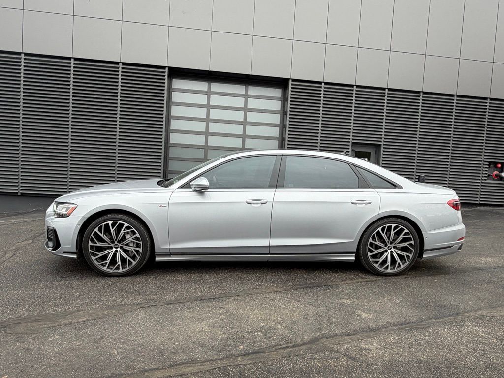 Recent Arrival! Black Leather. Our dealership is staffed with only the best automotive professionals in the Orange MA area. We work hard to bring our customers a broad selection of brand-new vehicles from the latest lineup of Chrysler, Dodge, Jeep and Ram car, truck and SUV vehicles. Our teams can work with you to find the best new or used vehicle for your needs, the best finance deal for your budget, and much more. With service, parts, and sales help all under one roof, you'll never have to look elsewhere for your automotive needs again. 2022 Audi A8 L 55 quattro L 55 quattro 4D Sedan Silver Metallic quattro 8-Speed Automatic with Tiptronic 3.0L V6 Turbocharged DOHC 24V LEV3-ULEV70 335hp Orange Chrysler Jeep, Dodge, Ram is proud to present you with another True Market Priced Pre-Owned Vehicle. This 2022 Audi A8 L 55 quattro is loaded with the following Factory Options: Black Leather Black Optic Package (Wheels: 21" Audi Sport 10-Y-Spoke-Evo-Design), Contour/Ambient LED Interior Lighting Package, Executive Package (20" 10-Parallel-Spoke-Design Wheels, Alu-Optic Buttons, Audi Adaptive Cruise Assist w/Lane Guidance, Audi Side Assist, Heated Steering Wheel, Intersection Assist, and Traffic Sign Recognition), Black Leather, 17 Speakers, 22-Way Heated Multi-Contour Comfort Front Seats, 4-Wheel Disc Brakes, ABS brakes, Adaptive suspension, Air Conditioning, Alloy wheels, AM/FM radio: SiriusXM, Audi Black Rings & Badges, Audi Guard Protection Kit, Audi smartphone interface (Apple CarPlay/Android Auto), Auto High-beam Headlights, Auto tilt-away steering wheel, Auto-dimming door mirrors, Auto-dimming Rear-View mirror, Auto-leveling suspension, Automatic temperature control, Bang & Olufsen Sound System w/3D Sound, Black Cloth Headliner, Brake assist, Bumpers: body-color, Compass, Delay-off headlights, Delete Front License Plate Holder, Door auto-latch, Driver door bin, Driver vanity mirror, Dual front impact airbags, Dual front side impact airbags, Electronic Stability Control, Emergency communication system, Fine Grain Ash Natural Wood Gray-Brown Inlays, Four wheel independent suspension, Front anti-roll bar, Front Bucket Seats, Front Center Armrest w/Storage, Front dual zone A/C, Front fog lights, Front reading lights, Garage door transmitter: HomeLink, Genuine wood door panel insert, Head restraints memory, Headlight cleaning, Heated door mirrors, Heated front seats, HVAC memory, Illuminated entry, Knee airbag, Leather Shift Knob, Leather steering wheel, Low tire pressure warning, Memory seat, Navigation system: MMI Navigation plus, Occupant sensing airbag, Outside temperature display, Overhead airbag, Overhead console, Panic alarm, Passenger door bin, Passenger vanity mirror, Power 2nd-Row Moonroof, Power adjustable front head restraints, Power door mirrors, Power driver seat, Power moonroof, Power passenger seat, Power steering, Power windows, Radio data system, Radio: Audi MMI Navigation Plus, Rain sensing wipers, Rear air conditioning, Rear anti-roll bar, Rear dual zone A/C, Rear fog lights, Rear reading lights, Rear seat center armrest, Rear side impact airbag, Rear Window Blind, Rear window defroster.