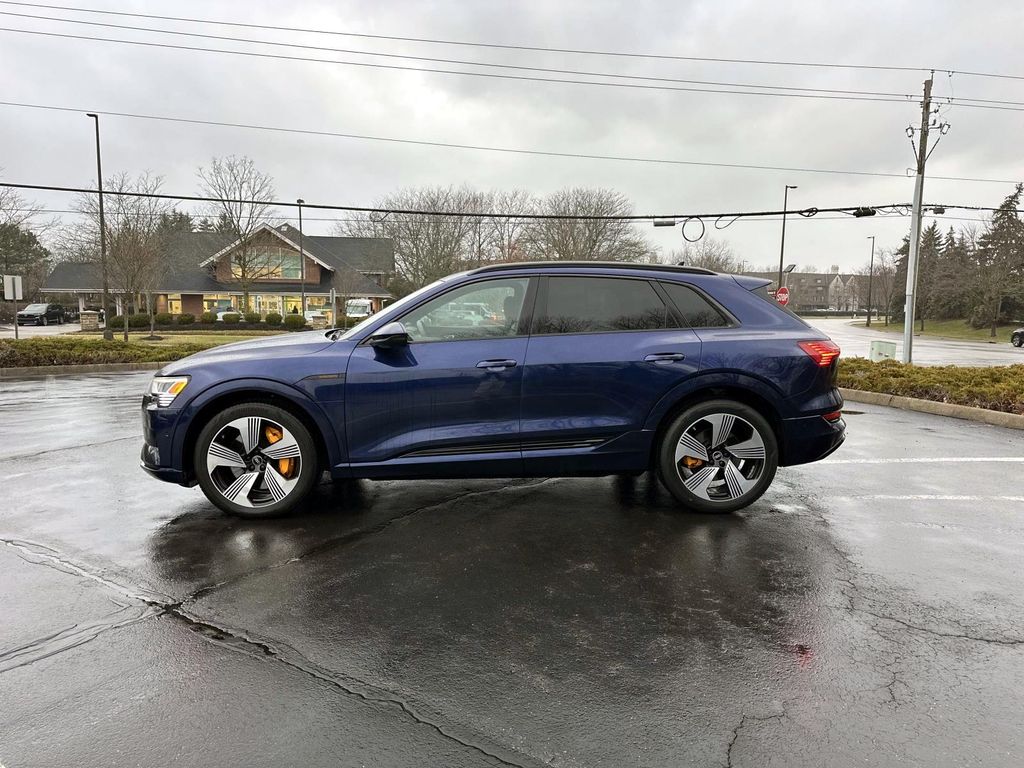 This vehicle is located at our Audi location. MAG Assured Price Guarantee. Lowest price, Guaranteed. MAG Audi of Dublin. Navarra Blue Metallic, Okapi Brown with Leather Seating Surfaces or Valcona Semi-Aniline Leather Seat Trim, 2nd Charge Port (AC Passenger Side), Adaptive Cruise Assist with Lane Guidance, Ambient Interior Lighting Package, Audi Phone Box with Wireless Charging, Bang & Olufsen 3D Premium Sound System, Black Optic Exterior Package, Black Optic Package, Dynamic Orange Brake Calipers, Heated Rear Seats, Illuminated Front & Rear Aluminum Door Sills, Matrix-Design LED Headlights, Premium Plus Package, Top View Camera System, Traffic Sign Recognition, Ventilated Front Seats, Wheels: 21" Black 5-Double-Spoke Turbine-Design. CARFAX One-Owner. quattro Audi e-tron Electric Motor 78/77 City/Highway MPG. MAG Audi Dublin. A proud member of Midwestern Auto Group. Affordable European Luxury, Everyday.