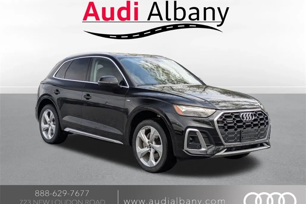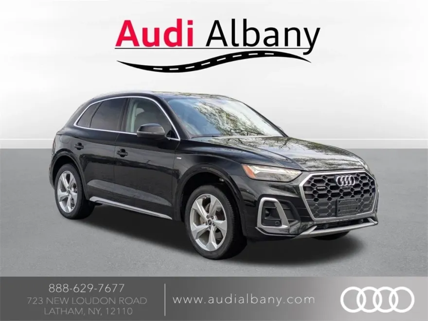 CARFAX One-Owner. This 2022 Mythos Black Metallic Audi Q5 45 S line Prestige AWD is well equipped and includes these features and benefits: Clean CARFAX. quattro Black w/Leather Seating Surfaces, Adaptive Cruise Control w/Traffic Jam Assist, All-Weather Floor Mats, Audi Active Lane Assist, Audi Beam-Rings, Audi Phone Box, Audi Virtual Cockpit Plus, Bang & Olufsen Sound System w/3D Sound, Convenience Package, Dual Pane Acoustic Glass for Front Side Windows, Gray-Brown Birch Natural Wood Inlays, Hands-On Detection Steering Wheel, Head-Up Display, Heated Rear Seats, Interior Lighting Plus Package, Leatherette Covered Center Console & Door Armrests, Matrix-Design LED Headlights w/Headlight Washers, Navigation Package, Panoramic Sunroof, Park Assist, Power Adjustable Steering Column, Prestige Package, Privacy Trunk Cover, Top View Camera System, Traffic Sign Recognition, Warm Weather Package, Wheels: 19" 5-Double-Arm Design Bi-Color Finish, Wheels: 20" 5-Arm Design. Odometer is 7518 miles below market average! 23/28 City/Highway MPG Here at Audi Albany we put all of our cars through an internal inspection to assure our customers that they are getting a quality pre-owned vehicle.