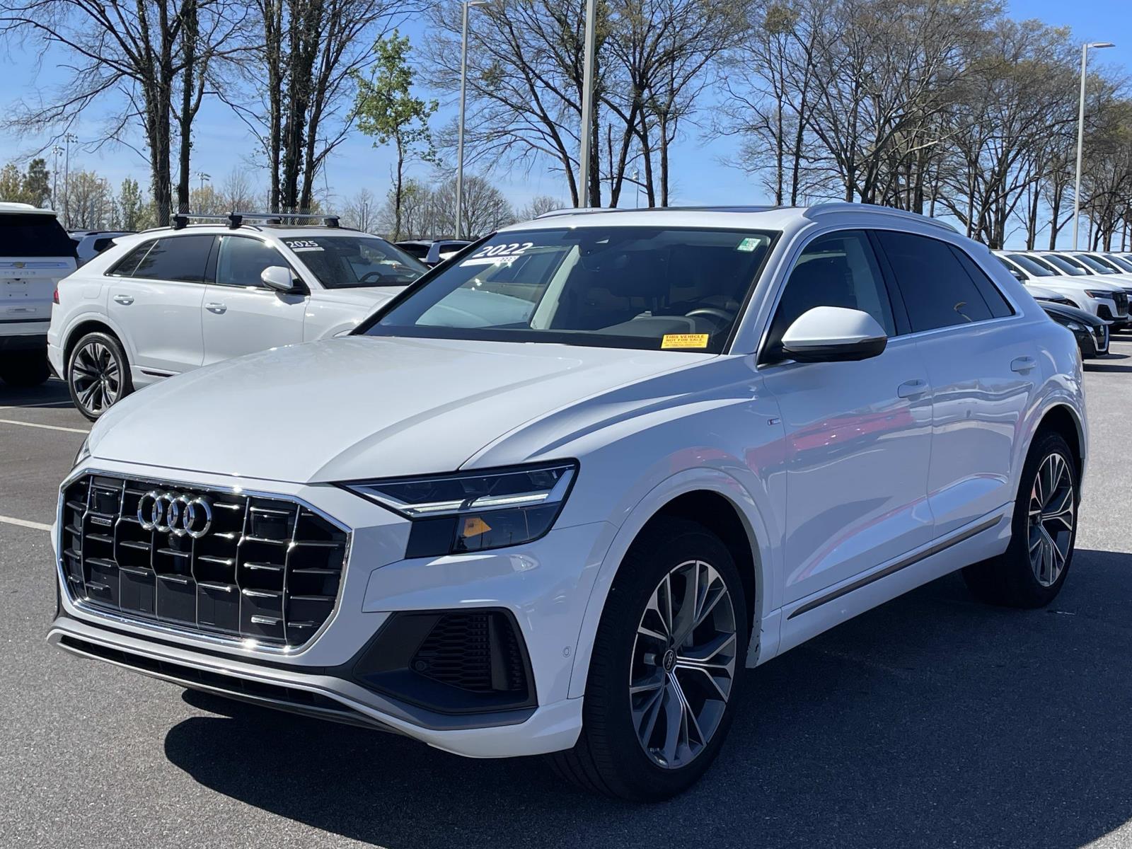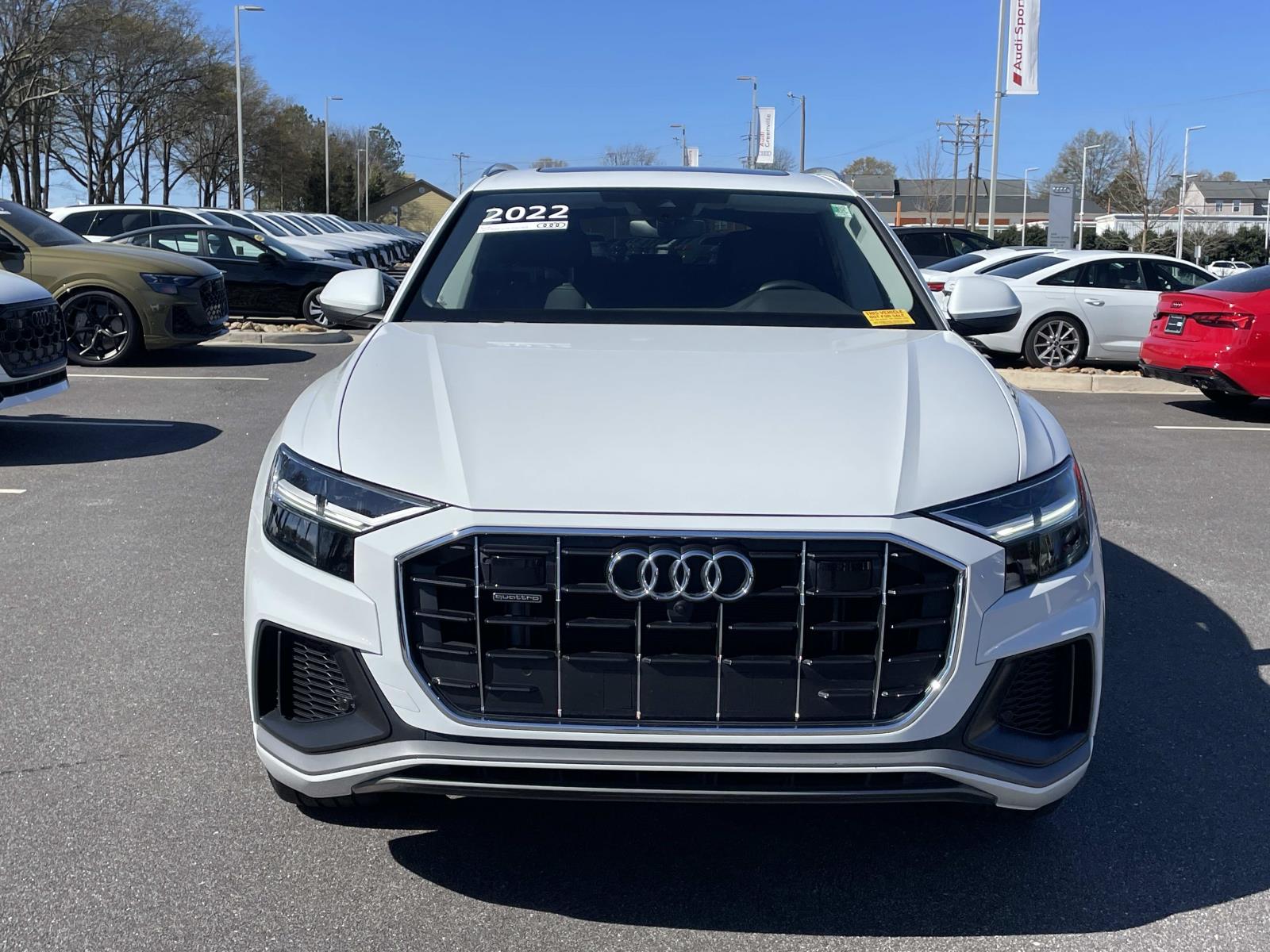 Audi Certified Preowned, adds 1 year and 20,000 miles to the original factory warranty. 2022 Audi Q8 55 Premium Plus quattro Glacier White quattro 8-Speed Automatic with Tiptronic 3.0L V6 Turbocharged DOHC 24V LEV3-ULEV70 335hp. CARFAX One-Owner. Recent Arrival!