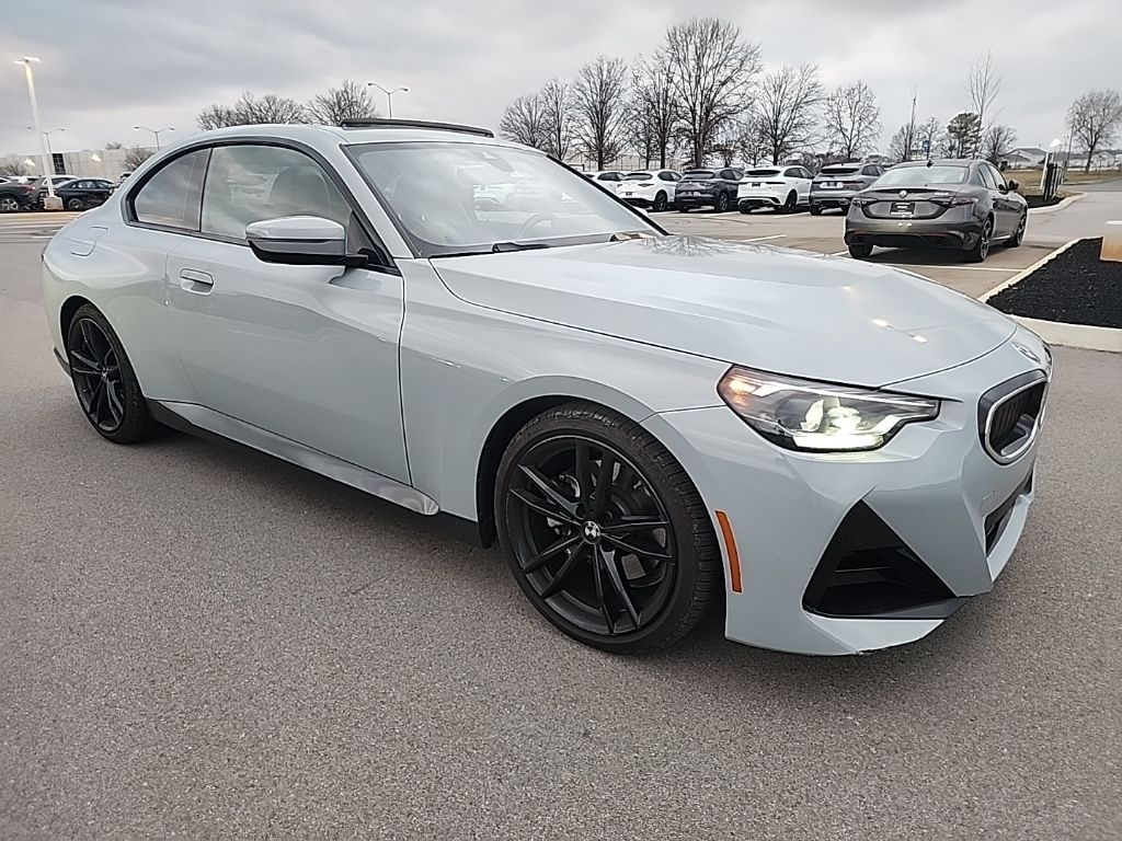 2022 BMW 2 Series 230i in Brooklyn Gray Metallic, Power Sunroof, Navigation, Rear Camera, Hands Free Calling, Automatic Climate Control, Power Windows, Power Locks, Alloy Wheels, Keyless Entry, Passed Rigorous Safety Inspection Performed by Certified Technician, 10 Speakers, 4-Wheel Disc Brakes, ABS brakes, Aerodynamic Kit, Air Conditioning, Alloy wheels, AM/FM radio: SiriusXM with 360L, Ambient Lighting, Apple CarPlay & Android Auto Compatibility, Auto-dimming door mirrors, Auto-dimming Rear-View mirror, Automatic High Beams, Automatic temperature control, BMW Assist eCall, BMW TeleServices, Brake assist, Bumpers: body-color, Comfort Access Keyless Entry, ConnectedDrive Services, Convenience Package, Delay-off headlights, Dual front impact airbags, Dual front side impact airbags, Electronic Stability Control, Emergency communication system: BMW Assist eCall, Exterior Parking Camera Rear, Four wheel independent suspension, Front anti-roll bar, Front Bucket Seats, Front dual zone A/C, Front Sport Seats, Fully automatic headlights, harman/kardon Surround Sound System, Heated door mirrors, Hi-Fi Sound System, Knee airbag, Leather Shift Knob, Low tire pressure warning, Memory seat, Moonroof, Navigation, Occupant sensing airbag, Outside temperature display, Overhead airbag, Panic alarm, Perforated SensaTec Upholstery, Power door mirrors, Power driver seat, Power Front Seats, Power passenger seat, Power steering, Power windows, Radio data system, Radio: AM/FM Audio System, Rain sensing wipers, Rear air conditioning, Rear anti-roll bar, Rear window defroster, Remote keyless entry, Security system, Shadowline Exterior Trim, SiriusXM w/360L, Speed-Sensitive Wipers, Split folding rear seat, Sport steering wheel, Steering wheel mounted audio controls, Tachometer, Telescoping steering wheel.