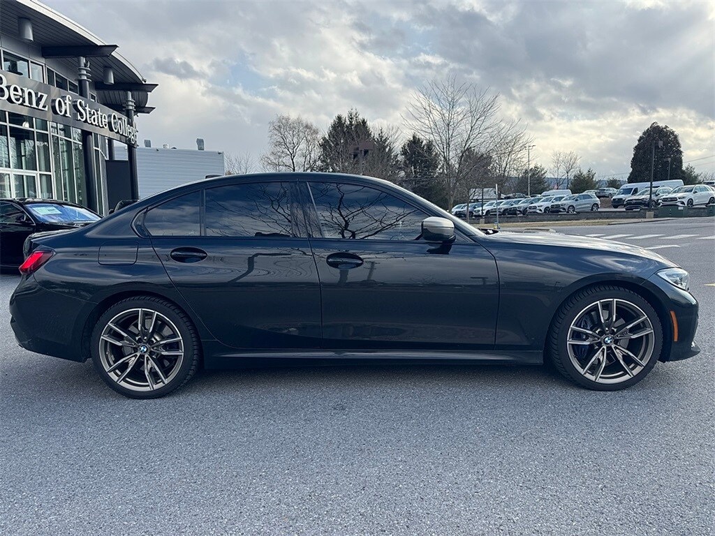 Clean Carfax. 2022 BMW 3 Series M340i xDrive AWD, 10 Speakers, 4-Wheel Disc Brakes, ABS brakes, Air Conditioning, Alloy wheels, Aluminum Trim w/Mesh Effect, AM/FM radio: SiriusXM with 360L, Apple CarPlay & Android Auto Compatibility, Apple CarPlay Compatibility, Auto High-beam Headlights, Auto-dimming door mirrors, Auto-dimming Rear-View mirror, Automatic temperature control, BMW Assist eCall, BMW TeleServices, Brake assist, Bumpers: body-color, Compass, Connected Package Pro, ConnectedDrive Services, Delay-off headlights, Driver door bin, Driver vanity mirror, Dual front impact airbags, Dual front side impact airbags, Electronic Stability Control, Emergency communication system: BMW Assist eCall, Enhanced Bluetooth, Exterior Parking Camera Rear, Four wheel independent suspension, Front anti-roll bar, Front Bucket Seats, Front Center Armrest, Front dual zone A/C, Front reading lights, Fully automatic headlights, Garage door transmitter, Hands-Free Bluetooth & USB Audio Connection, Heated door mirrors, Heated Front Seats, Heated Steering Wheel, Hi-Fi Sound System, Illuminated entry, Knee airbag, Leather Shift Knob, Leather steering wheel, Live Cockpit Pro w/Navi, Low tire pressure warning, Lumbar Support, Memory seat, Navigation System, Occupant sensing airbag, Outside temperature display, Overhead airbag, Panic alarm, Passenger door bin, Passenger vanity mirror, Perforated Sensa Tec Upholstery, Power door mirrors, Power driver seat, Power Front Seats, Power moonroof, Power passenger seat, Power steering, Power windows, Radio data system, Radio: AM/FM Audio System, Rain sensing wipers, Rear air conditioning, Rear anti-roll bar, Rear reading lights, Rear seat center armrest, Rear window defroster, Remote Engine Start, Remote keyless entry, Security system, SiriusXM w/360L, Speed control, Speed-sensing steering, Speed-Sensitive Wipers, Split folding rear seat, Spoiler, Sport Seats, Sport steering wheel, Steering wheel mounted audio controls, Tachometer, Telescoping steering wheel, Tilt steering wheel.