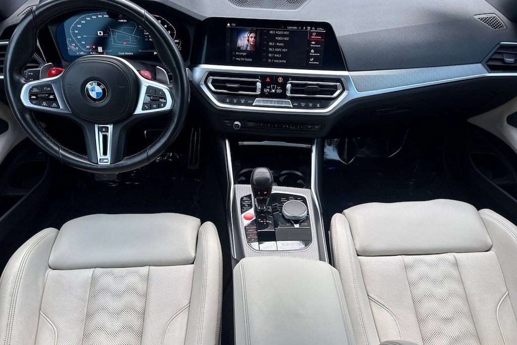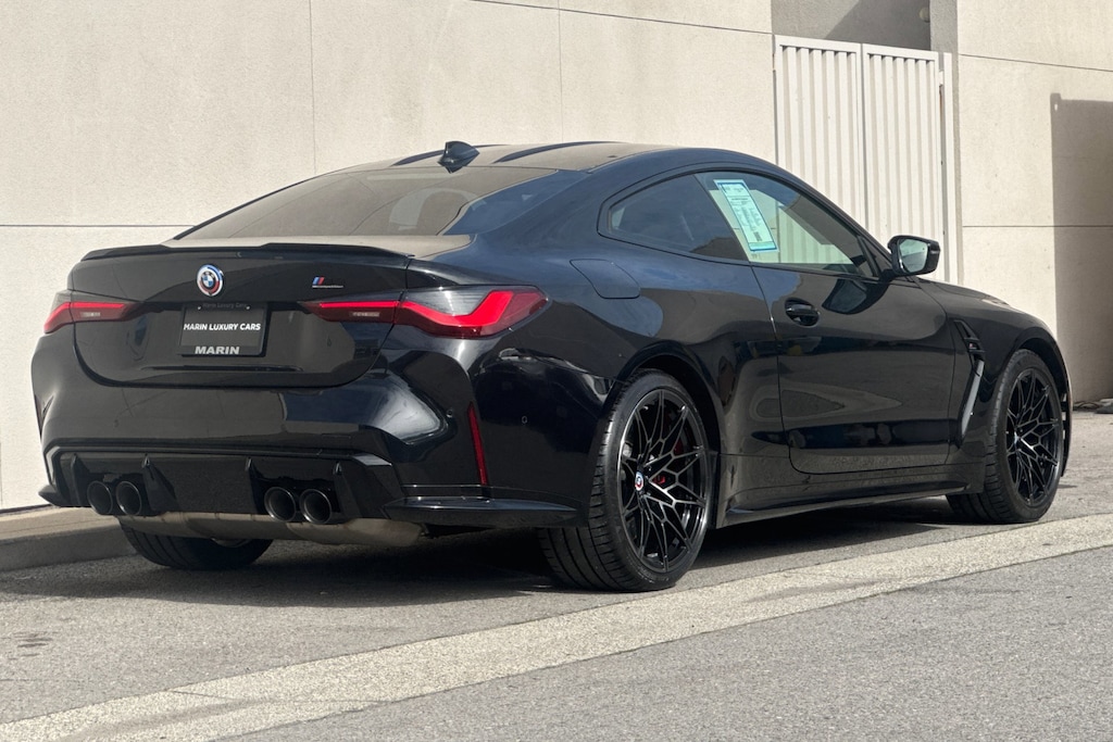 2022 BMW M4 Competition xDrive. Black Sapphire Metallic exterior on Ivory White interior. Driving Assistance Pro Package (inc.) Extended Traffic Jam Assistant, Active Driving Assistant Pro, Parking Assistance Plus, Drive Recorder, Executive Package (inc.) Remote Engine Start, Heated Steering Wheel, Power Tailgate, Gesture Control, Adaptive M Suspension, M Compound Brakes with Red Calipers, M Sport Seats, Heated/Ventilated Front Seats, Icon Adaptive LED with Laserlight, M Shadowline Lights. CarPlay/Android Auto Compatible. Jaguar Marin is dedicated to your satisfaction before, during, and after your purchase. We'll go the extra mile to take care of you.