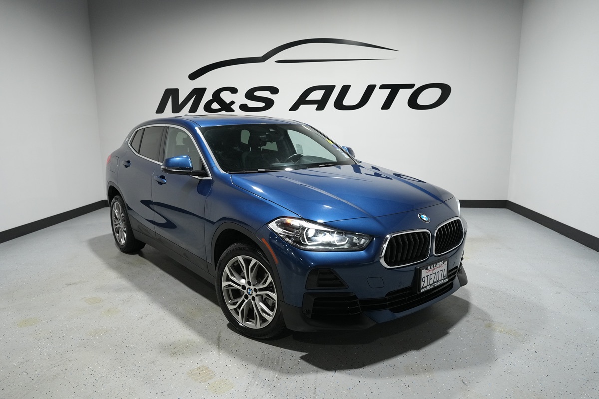 The 2022 BMW X2 sDrive28i Sports Activity Coupe exudes sporty elegance with its striking Phytonic Blue Metallic exterior. Equipped with a 2.0L 4-cylinder engine, this coupe delivers both power and efficiency, ensuring a dynamic driving experience. Its sleek design is accentuated by LED headlights and a black high gloss trim with pearl chrome accents, making it a true head-turner on any road. Step inside, and you'll be greeted by a sophisticated interior finished in classic black. The panoramic moonroof floods the cabin with natural light, enhancing the luxurious feel of the space. Both driver and passengers can enjoy the convenience of features like Apple CarPlay, navigation, and telematics, all seamlessly integrated for a connected journey. The heated front seats and steering wheel provide additional comfort, especially during chilly drives. Safety and practicality are also at the forefront with advanced features like lane departure warning and rain-sensing wipers. The keyless entry and hands-free power liftgate make accessibility effortless while the Convenience Package adds further practicality to your everyday needs. Overall, the 2022 BMW X2 sDrive28i Sports Activity Coupe is a perfect blend of style, performance, and innovative technology, making every drive an exhilarating experience.