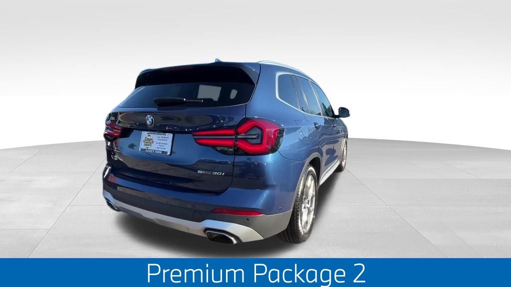 Welcome to Casey BMW, your trusted BMW dealership proudly serving Newport News, Hampton Roads, and the surrounding Tidewater area. We are committed to delivering an exceptional automotive experience through premium vehicles, transparent pricing, and a customer-first approach from start to finish. Whether you're shopping for a brand-new BMW, a Certified Pre-Owned BMW, or a quality pre-owned vehicle, you can expect the performance, luxury, and confidence that drivers have come to associate with the Casey name. This 2022 BMW X3 sDrive30i is an exceptional choice for the discerning driver. Powered by a 2.0L I4 TwinPower Turbo engine and an 8-Speed Automatic Sport transmission, this rear-wheel-drive SUV delivers an impressive balance of performance and efficiency, with an EPA-estimated 23 MPG in the city and 29 MPG on the highway. The striking Phytonic Blue Metallic exterior complements the well-appointed interior, which features premium SensaTec upholstery, a panoramic moonroof, and a host of advanced technology and convenience features. The Live Cockpit Pro with Navigation system provides seamless connectivity and intuitive control, while the Premium Package 2 adds luxurious touches like a heated steering wheel, heated front seats, and gesture control. Whether you're navigating the daily commute or embarking on a weekend adventure, this BMW X3 sDrive30i is ready to elevate your driving experience. The combination of power, efficiency, and premium amenities make this pre-owned SUV an exceptional value that's sure to impress. We invite you to experience the Casey BMW difference by visiting our showroom and taking this exceptional BMW X3 sDrive30i for a test drive. Our knowledgeable sales team is here to assist you every step of the way, ensuring you find the perfect vehicle for your needs.