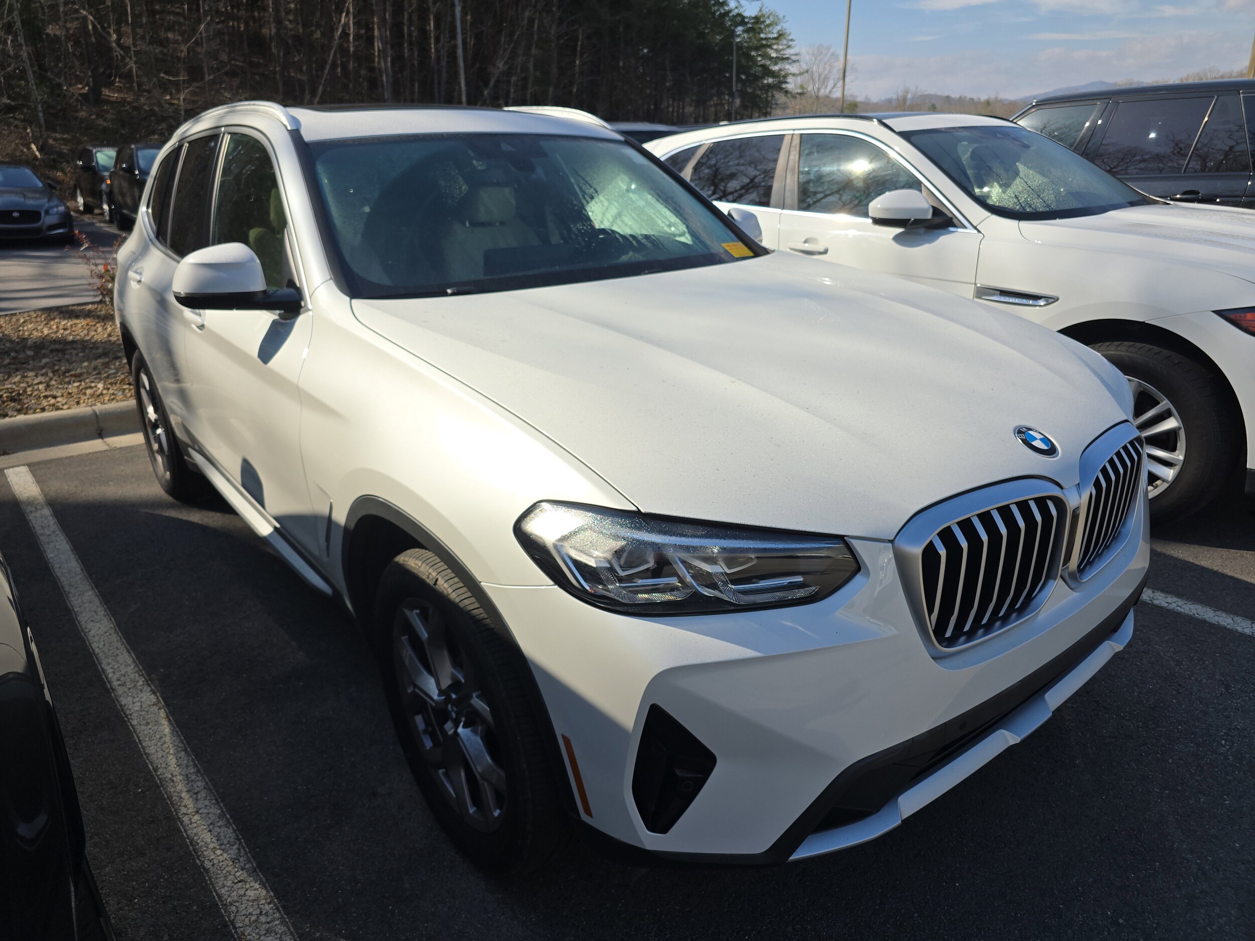 CARFAX One-Owner. Clean CARFAX. Mineral White Metallic 2022 BMW X3 xDrive30i AWD 8-Speed Automatic Sport 2.0L I4 TwinPower Turbo 8-Speed Automatic Sport, Comfort Access Keyless Entry, Connected Package Pro, Gesture Control, Head-Up Display, Heated Front Seats, Heated Steering Wheel, Live Cockpit Pro w/Navigation, Lumbar Support, Panoramic Moonroof, Premium Package 2, Rain sensing wipers, Trailer Hitch, Wheels: 19" x 7.5" Y-Spoke (Style 693). Recent Arrival! 21/28 City/Highway MPG All advertised prices and offers exclude dealer/documentary fees, tax, tag, title, registration and electronic titling fees. Out of state buyers are responsible for all state, county, city taxes and fees, as well as title/registration fees in the state that the vehicle will be registered. While great effort is made to ensure the accuracy of the information on this site, errors do occur so please verify information with our customer service rep or by visiting the dealership. All offers subject to change without notice, please confirm listings with dealer. Manufacturer incentive data & vehicle features is provided by third parties & believed to be accurate as of the time of publication. Please contact the store by email or phone for details & availability of incentives.
