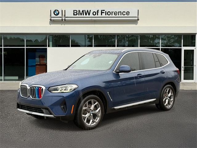 Experience luxury and performance with this stunning 2022 BMW X3 xDrive30i! With only 47,462 miles, this premium SUV delivers exceptional value compared to higher-mileage alternatives. Safety is paramount with an impressive 5-Star Overall Safety Rating, plus advanced protection features including Frontal Collision Warning with City Collision Mitigation, Active Blind Spot Detection, and Daytime Pedestrian Detection. Lane Departure Warning and Rear Cross Traffic Alert provide additional peace of mind. Premium features include a panoramic sunroof, integrated navigation with voice activation, Apple CarPlay and Android Auto compatibility, and BMW Intelligent Personal Assistant. The turbocharged 2.0L engine with 248HP and full-time AWD ensures confident performance in any condition. Comfort meets convenience with Sensatec leatherette seating, power liftgate, push-button start with Comfort Access, and WiFi hotspot capability. The power-adjustable driver seat with lumbar support makes every journey enjoyable. This well-maintained pre-owned BMW has been thoroughly inspected and comes with our commitment to quality and transparency. At BMW of Florence, we're dedicated to providing exceptional vehicles and outstanding customer service. Visit us at 2199 David H McLeod Blvd to experience this remarkable X3 today!