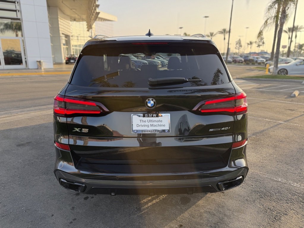 CARFAX One-Owner. Black Sapphire Metallic 2022 BMW X5 sDrive40i M Sport Premium RWD 8-Speed Automatic Sport 3.0L I6 DOHC 24V TwinPower Turbo One Owner, New Tires, Bluetooth, Back up camera, Moon Roof/ Panoramic Roof, Navigation/ GPS/ NAV, 10 Speakers, 4-Wheel Disc Brakes, 4-Zone Automatic Climate Control, ABS brakes, Active Driving Assistant Pro, Active Park Distance Control, Adaptive M Suspension, Aerodynamic Kit, Air Conditioning, Alloy wheels, AM/FM radio: SiriusXM with 360L, AM/FM Stereo, Auto High-beam Headlights, Auto tilt-away steering wheel, Auto-dimming door mirrors, Auto-dimming Rear-View mirror, Automatic temperature control, Axle Ratio: TBD, BMW Assist eCall, BMW TeleServices, Brake assist, Bumpers: body-color, Compass, Connected Package Pro, ConnectedDrive Services, Delay-off headlights, Drive Recorder, Driver door bin, Driver vanity mirror, Driving Assistance Professional Package, Dual front impact airbags, Dual front side impact airbags, Electronic Stability Control, Emergency communication system: BMW Assist eCall, Enhanced Bluetooth, Extended Traffic Jam Assistant, Exterior Parking Camera Rear, Four wheel independent suspension, Front anti-roll bar, Front Bucket Seats, Front Center Armrest, Front dual zone A/C, Front reading lights, Fully automatic headlights, Garage door transmitter, Genuine wood console insert, Genuine wood dashboard insert, Genuine wood door panel insert, Gesture Control, Head restraints memory, Head-Up Display, Heated door mirrors, Heated Front Seats, Heated front seats, Hi-Fi Sound System, High-Gloss Shadowline Roof Rails, Illuminated entry, Increased Top Speed Limiter, Knee airbag, Leather Shift Knob, Leather steering wheel, Live Cockpit Pro w/Navigation, Low tire pressure warning, Lumbar Support, M Sport Brakes w/Red Calipers, M Sport Package, M Sport Package (337), M Steering Wheel, Memory seat, Navigation System, Occupant sensing airbag, Outside temperature display, Overhead airbag, Panic alarm, Parking Assistance Package, Parking Assistant Plus, Passenger door bin, Passenger vanity mirror, Power adjustable front head restraints, Power door mirrors, Power driver seat, Power Front Seats, Power moonroof, Power passenger seat, Power steering, Power windows.