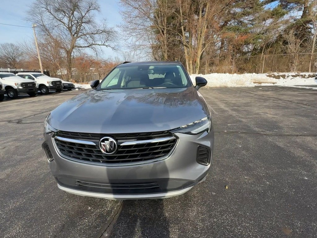 Drive in style and confidence with this Gray 2022 Buick Envision AWD Preferred 4dr Crossover. Powered by a robust 2.0L Turbo I4 engine paired with a 9-speed shiftable automatic transmission, this SUV offers a smooth and powerful ride. Enjoy peace of mind with advanced safety features such as Lane Change Alert with Side Blind Zone Alert, Rear Cross Traffic Alert, Lane Keeping Assist, and both audible and visual pre-collision warnings. The Preferred trim brings comfort and technology together with leatherette upholstery accents, an 8-inch Buick CarPlay system featuring wireless Apple CarPlay and Android Auto, and a Wi-Fi hotspot for on-the-go connectivity. Additional highlights include a rearview camera, rear parking sensors, integrated turn signal mirrors, heated seats, interior accents, interior accents, keyless entry, lane departure warning, lane keep assistant, and more. Stay organized and enjoy the vehicle.