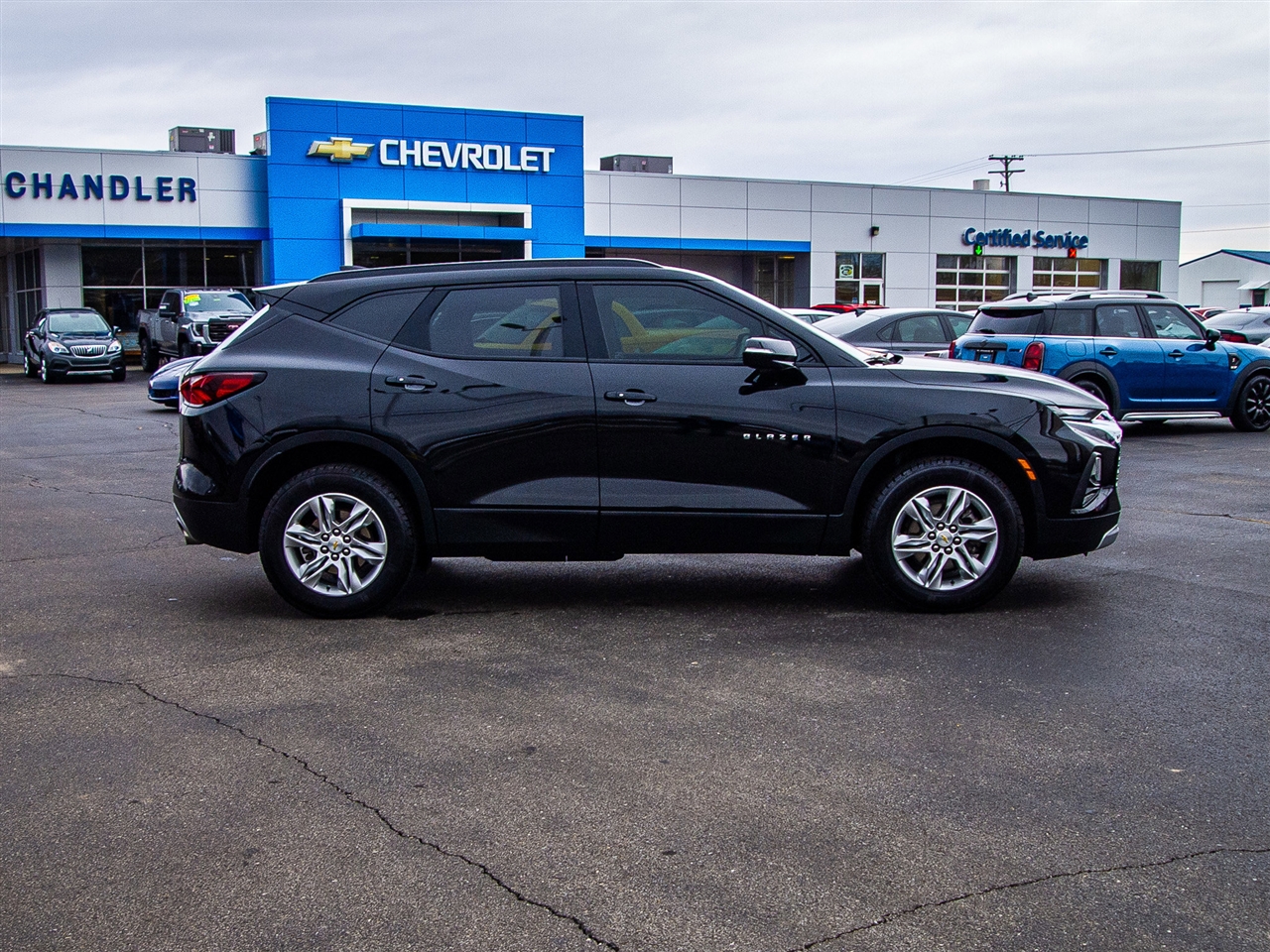 Black 2022 Chevrolet Blazer LT AWD 9-Speed Automatic with Overdrive 2.0L Turbocharged 4cyl Turbo, AWD - Never Worry About the Weather Again!, Local Trade!, Clean Vehicle History Report, Bought Here, Serviced Here! We Have All Records!, Clean Carfax, Bluetooth, Backup Camera, LT Package, Remote Start, Blazer LT, AWD, Black. Recent Arrival! 22/27 City/Highway MPGTEXT us on our website. It's easy and no-hassle. Give us a chance to BEAT THEIR PRICE on a new vehicle! Request a quote at chandlerchevroletusa.com! Chandler Chevrolet is conveniently located in Madison, Indiana, near both Louisville and Cincinnati. We put our customers first. If you don’t see what you want, new or used, we will locate it for you. We welcome trade-ins and will buy your vehicle whether or not you buy ours; come in for a free, friendly appraisal. Don’t have a way to get here? We will come to you or give you a ride. We believe that building good relationships with our customers comes before all else, whether you're considering a new or used vehicle or stopping in for a quick oil change. Call or stop in today and see why we’re called The Savings Place !