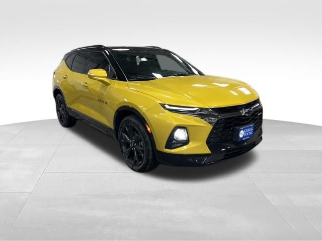 Start driving our 2022 Chevrolet Blazer RS AWD Heated Seats Heated Steering Wheel in Nitro Yellow Metallic, and prepare for stares! Motivated by a 3.6 Liter V6 providing 308hp matched to a 9 Speed Automatic transmission for spirited performance. This All Wheel Drive SUV is also easy to maneuver and fun to pilot, plus it returns nearly 26mpg. A stylish design is another benefit of our Blazer, which is ready to roll with an exclusive RS grille set off by LED lighting, HID headlamps, a hands-free liftgate, 20-inch alloy wheels, heated mirrors, and dual exhaust outlets for a fantastic finish. Our sporty and versatile RS cabin treats you right with heated leather power front seats, a heated leather-wrapped steering wheel, dual-zone automatic climate control, keyless access, pushbutton ignition, and remote start. Full-color navigation makes way-finding easy, and you're well connected with an 8-inch driver information display, an 8-inch touchscreen, wireless Android Auto/Apple CarPlay, Bluetooth, WiFi compatibility, and a six-speaker audio system. Chevrolet shows its focus on first-class safety with intelligent technology such as a backup camera, blind-zone alert, automatic braking, lane-keeping assistance, rear cross-traffic alert, rear parking sensors, forward collision warning, and a rear-seat reminder. Our Blazer RS blends all that and more to bring you better driving each day. Save this Page and Call for Availability. We Know You Will Enjoy Your Test Drive Towards Ownership!