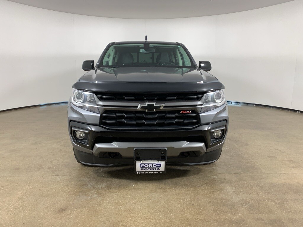 Satin Steel Gray Metallic 2022 Chevrolet Colorado Z71 Crew Cab 4WD with Jet Black interior - available now at Ford of Peoria in Peoria, IL. This Chevrolet Colorado Z71 combines proven V6 performance, true off-road capability, and modern technology, making it an excellent choice for drivers who want midsize truck versatility with everyday comfort and rugged confidence. Power comes from a strong 3.6-liter V6 engine paired with an 8-speed automatic transmission, delivering responsive acceleration, confident highway passing, and solid towing capability. The Z71 Off-Road Package enhances durability and control with upgraded suspension tuning, skid protection, and advanced traction features, giving this Colorado the ability to handle trails, job sites, and changing Midwest weather with ease. This Colorado Z71 has a clean AutoCheck history and presents in excellent overall condition, offering a strong balance of off-road capability, comfort, and modern features.