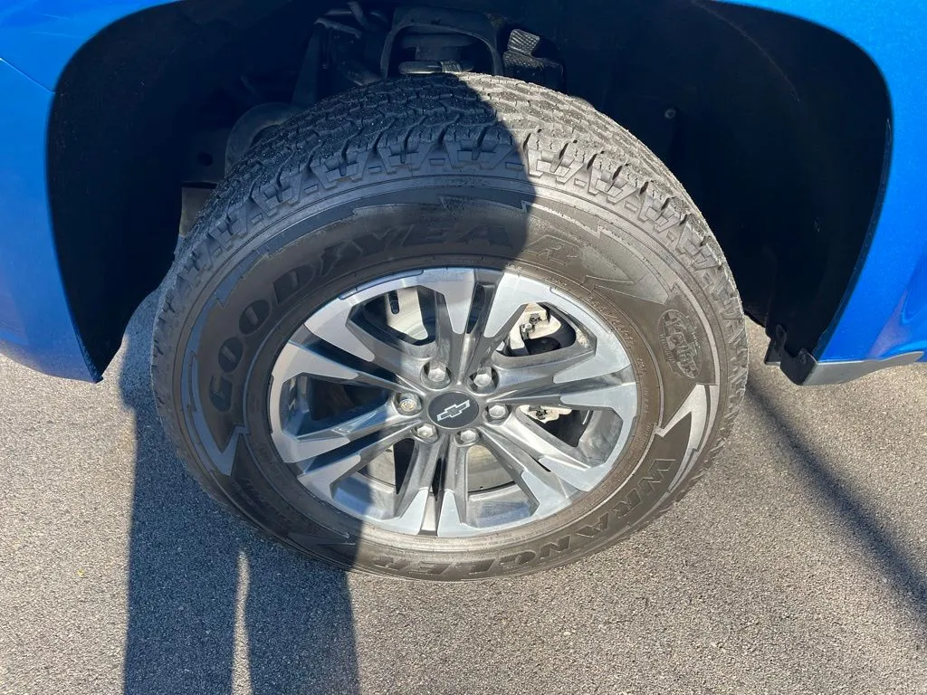 This striking 2022 Chevrolet Colorado Z71 combines rugged capability with refined comfort, making it an ideal choice for both work and adventure. Finished in a vibrant Bright Blue Metallic exterior, this used pickup truck exudes confidence, complemented by a sleek black interior designed for durability and style. With just under 50,000 miles, it offers a reliable and well-maintained option for those seeking a versatile midsize truck. Powered by a robust 3.6-liter V6 engine producing 308 horsepower and 275 lb-ft of torque, this Colorado is built to handle tough tasks while delivering impressive fuel efficiency of up to 24 mpg highway. The 8-speed automatic transmission and 4WD drivetrain ensure optimal performance across diverse terrains, making it perfect for off-road excursions or daily driving. Equipped with an array of modern features, this Chevrolet Colorado enhances your driving experience with cutting-edge technology and convenience. Stay connected with Apple CarPlay, Bluetooth, and a Wi-Fi hotspot, ensuring seamless integration for your devices. The premium audio system and satellite radio readiness provide entertainment on every journey, while the 8-inch touchscreen display offers intuitive control over your media and navigation. Safety is prioritized with a backup camera, fog lights, and parking sensors, aiding in secure maneuvering. Inside, heated seats and advanced connectivity options make every ride comfortable and engaging, whether you're commuting or heading out on an adventure.
