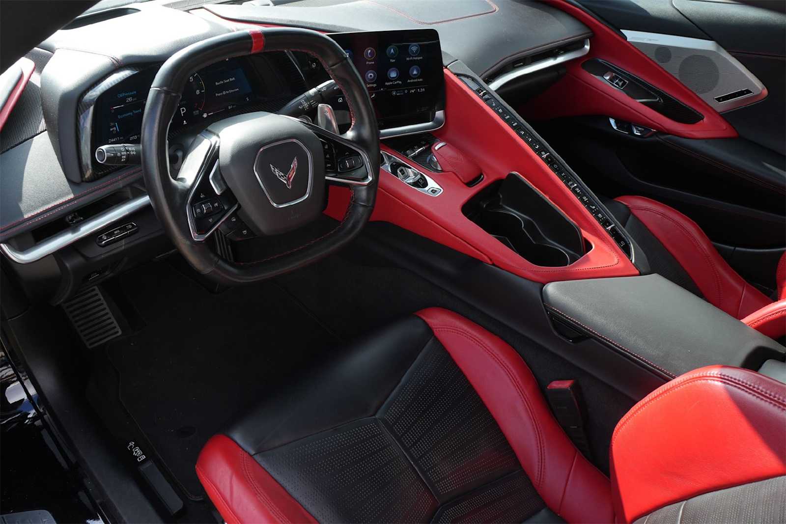 Bluetooth, Corvette Stingray 2LT, 2D Convertible, 6.2L V8, 8 Speed Dual Clutch, RWD, Black, Adrenaline Red Leather, 2 Cargo Nets, Battery Protection Package, Driver Power Bolster Seat Adjuster, Electrical Theft Deterrent System, Electronic Limited-Slip Differential, HD Front & Rear Vision Cameras, Head-Up Display, Heated & Vented Driver & Passenger Seats, Heated Steering Wheel, Heavy-Duty Cooling System, Memory Driver & Passenger Convenience Package, Navigation System, Passenger Power Bolster Seat Adjuster, Performance Data & Video Recorder, Performance Exhaust w/Stainless-Steel Tips, Performance Rear Axle Ratio, Power Driver Lumbar Control Seat Adjuster, Power Passenger Lumbar Control Seat Adjuster, Power-Adjustable Outside Heated Mirrors, Preferred Equipment Group 2LT, Rear Cross Traffic Alert, Rear Park Assist, Rear Z51 Spoiler, Side Blind Zone Alert, Universal Home Remote, Vehicle Inclination Theft Deterrent Sensor, Vehicle Interior Movement Theft Deterrent Sensor, Wireless Charging for Devices.