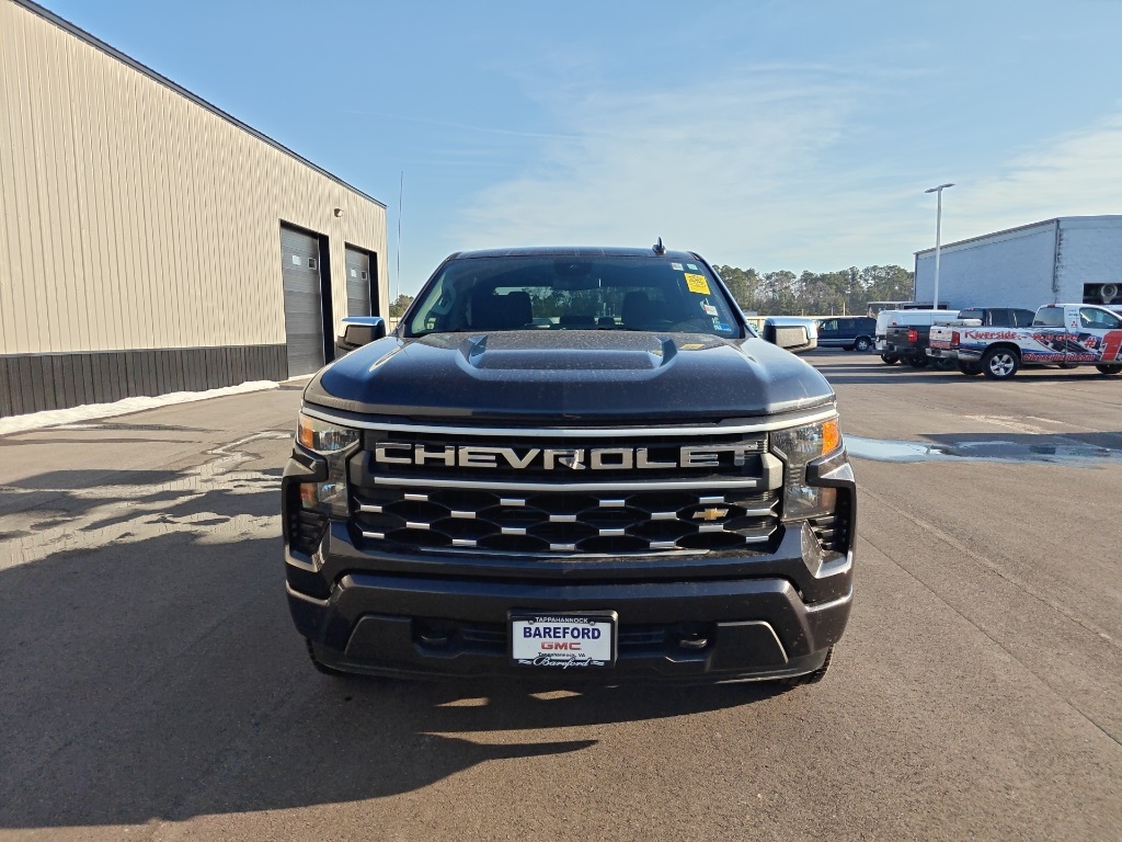 Carfax One-Owner. 4 wheel drive, clean Carfax, Apple CarPlay, Android Auto, power driver seat, remote keyless entry, cruise control, bed liner, locking differential, 20" wheels, turbo charged, Silverado 1500 Custom, 4D Crew Cab, 2.7L Turbo, 8-Speed Automatic, 4WD, Dark Ash Metallic, Jet Black w/Cloth Seat Trim. 2022 Chevrolet Silverado 1500 Custom. Call us today at 252-675-4308 to schedule your new or used vehicle test drive appointment at Riverside Chrysler Jeep Dodge Ram, Riverside Subaru, or Riverside Mitsubishi in New Bern NC, where we make buying your new or pre-owned vehicle so easy! We look forward to seeing you!