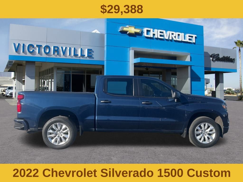 Northsky Blue Metallic 2022 Chevrolet Silverado 1500 Custom RWD 8-Speed Automatic 2.7L Turbo 8-Speed Automatic, Black Cloth. Why Buy from Victorville Chevrolet? We have received Chevrolet’s Dealer of the Year award multiple years in a row. Been voted locally Best of the Desert by the Daily Press. We are the highest volume selling dealership in the high desert and treat you like family. At Victorville Chevrolet, we do things differently. Our team is built around accuracy, honesty, and accountability from your first interaction to the moment you drive home. We provide: Verified availability checked by real managers Transparent, upfront pricing with no hidden fees A relaxed, zero-pressure experience Fast, consistent communication Access to inventory across Southern California if we don’t have your exact match A better Chevy experience starts right here at Victorville Chevrolet. Odometer is 23214 miles below market average!