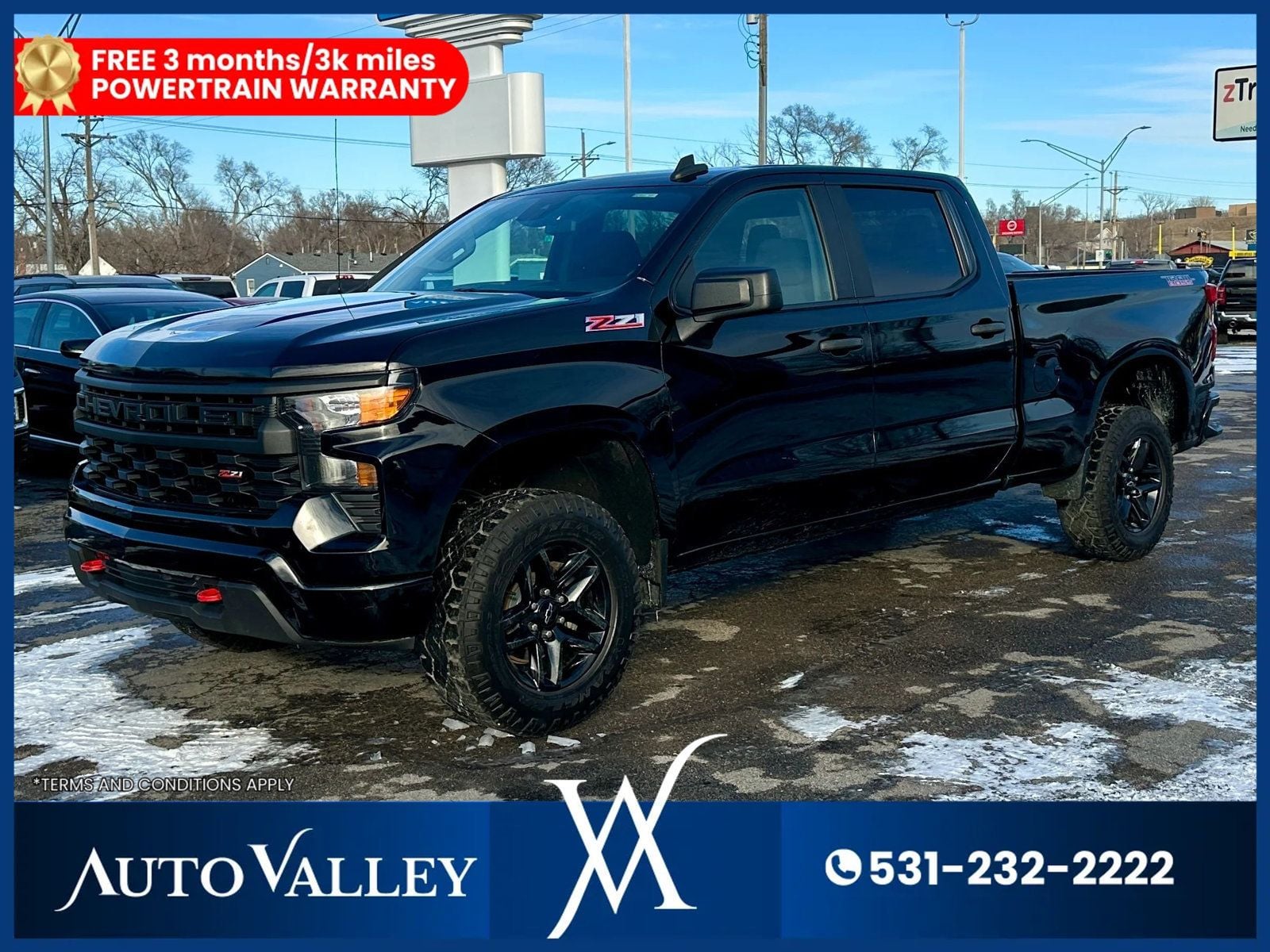 The 2022 Chevrolet Silverado 1500 Crew Cab Custom Trail Boss blends bold capability, everyday comfort, and rugged off-road readiness. Powered by a strong engine (including available 2.7L Turbo High-Output or available V8 options), it delivers impressive torque and confident acceleration for towing and hauling duties. The Trail Boss package adds a factory-lifted suspension, all-terrain tires, and off-road-ready hardware for confident performance on tough terrain. With a spacious Crew Cab, versatile Durabed cargo box, and modern tech like touchscreen infotainment with smartphone integration, it’s built for work, play, and adventure. Strong towing ability, durable construction, bold styling, and practical versatility make this Silverado a standout full-size pickup. It comes with 3 months/3,000-mile free limited warranty. All of our vehicles go through a 100+ point inspection completed by our certified mechanics, and the inspection reports are available upon request. Financing - We have partnerships with lending institutions that can finance both in-state and out-of-state customers, which should fit your needs. Warranties - (Service Contracts) - We offer affordable service contract plans for peace of mind! These service contracts range from Powertrain to 60 months of Platinum coverage! At Autovalley, we make car buying simple, straightforward, and enjoyable. Visit our showroom today or call (531) 232-2222 to schedule an appointment and test drive. Upon request, we offer a complimentary vehicle history report on every vehicle in stock. This car has a Nebraska-branded title.