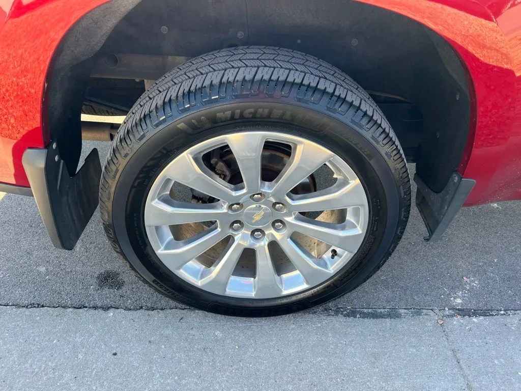 This 2022 Chevrolet Silverado 1500 LTD High Country stands out as a premium used pickup truck with a striking Cherry Red Tintcoat exterior and a sleek Jet Black interior. Powered by a turbocharged 3.0-liter six-cylinder diesel engine, it delivers an impressive 277 horsepower and 460 lb-ft of torque, making it a capable choice for both work and leisure. With a 10-speed automatic transmission and 4WD, this Silverado offers smooth shifting and excellent traction across various terrains. Its well-maintained condition with just over 50,000 miles ensures reliability, while modern features like Apple CarPlay, Bluetooth, a backup camera, and a premium audio system enhance your driving experience. The truck also comes equipped with heated seats, keyless entry, memory seats, navigation, satellite radio, and a Wi-Fi hotspot, making every ride comfortable and connected. Additional conveniences include wireless phone charging, cross traffic alert, and a tow package, all designed to meet the needs of a demanding driver. This Silverado High Country combines advanced safety features with premium technology to provide peace of mind on every journey. It includes a rear seat reminder to alert you before exiting, front and rear parking sensors for easy maneuvering, and four-wheel anti-lock brakes for effective stopping. The truck features auto-locking and anti-lockout power door locks, along with a programmable safety key for added security. These systems work together to keep you and your passengers protected, whether you're on or off-road, making it a dependable choice for daily driving or hauling heavy loads.