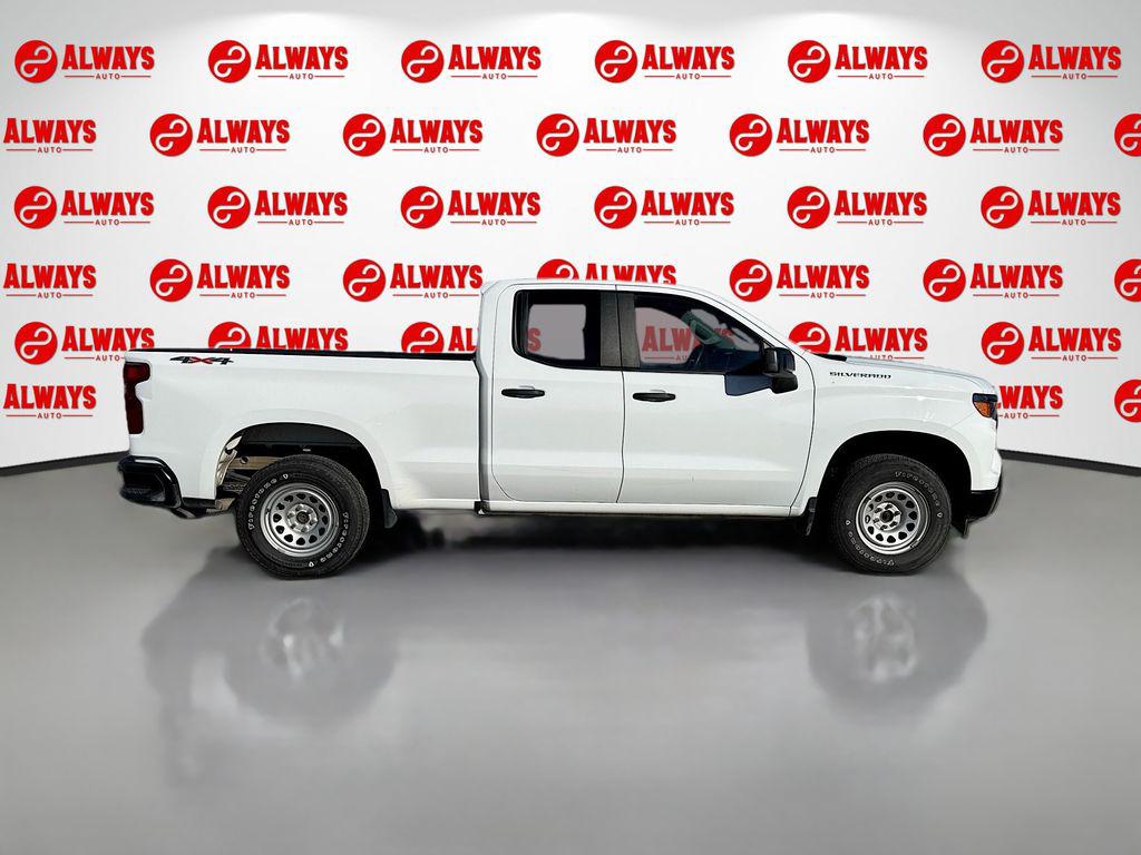 WT convenience package ($795 when purchased new), 8-Speed Automatic, 4WD, Jet Black Vinyl, 3.5" Monochromatic Display Driver Info Center, Black (Semi-Gloss) Front Bumper, Black (Semi-Gloss) Rear Bumper, Black Manual Outside Mirrors, Bluetooth for Phone, Deep-Tinted Glass, Electric Rear-Window Defogger, Electrical Steering Column Lock, Electronic Cruise Control, Front Frame-Mounted Black Recovery Hooks, HD Rear Vision Camera, Heated Power-Adjustable Outside Mirrors, Inside Rear-View Mirror with Tilt, Locking Rear- and Tailgate. Summit White 2022 Chevrolet Silverado 1500 is a new Silverado with a turbocharged engine and a full-size bed. The vehicle features a Summit White exterior with a Jet Black interior. It is equipped with a convenience package, 8-speed automatic transmission, and four-wheel drive. The Silverado is designed for both work and comfort, offering advanced safety features and modern connectivity.