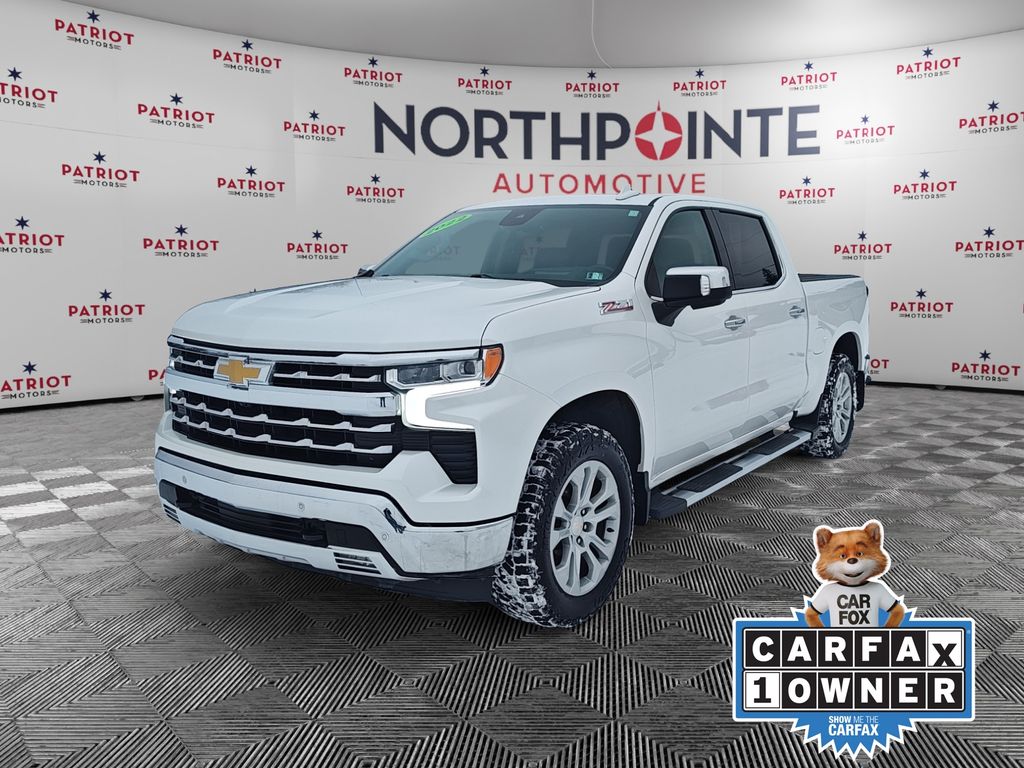 2022 Chevrolet Silverado 1500 LTZ Iridescent Pearl Tricoat EcoTec3 5.3L V8 4WD. Navigation, heated seats, Apple CarPlay, backup camera, power seats, 10-Way Power Driver Seat w/Lumbar, 10-Way Power Passenger Seat Adjuster w/Lumbar, 12.3" Multicolor Reconfigurable Digital Display, 120-Volt Instrument Panel Power Outlet, 15" Diagonal Multicolor Head-Up Display, 2 USB Data Ports, 2nd Row Heated Outboard Seats, Adaptive Cruise Control, All-Weather Floor Liner (LPO) (AAK), Auto-Dimming Inside Rear-View Mirror, Auto-Locking Rear Differential, Bed View Camera, Bluetooth For Phone, Chevytec Spray-On Black Bedliner, Chrome Mirror Caps, Color-Keyed Carpeting Floor Covering, Compass, Deep-Tinted Glass, Driver Memory, Dual Rear USB Ports (Charge Only), Electric Rear-Window Defogger, Electrical Steering Column Lock, Electronic Cruise Control, Floor Mounted Center Console, Front Frame-Mounted Black Recovery Hooks, Front LED Fog Lamps, Front Rainsensing Wipers, Front Rubberized Vinyl Floor Mats, Heated Driver & Front Outboard Passenger Seats, Heated Steering Wheel, High Capacity Suspension Package, Hitch Guidance w/Hitch View, Integrated Trailer Brake Controller, Keyless Open & Start, Leather Wrapped Steering Wheel, LED Cargo Area Lighting, LTZ Convenience Package, LTZ Convenience Package II, LTZ Plus Package, LTZ Premium Package, Navigation System, OnStar & Chevrolet Connected Services Capable, Outside Heated Power-Adjustable Mirrors, Power Front Passenger Windows w/Express Up/Down, Power Front Windows w/Driver Express Up/Down, Power Rear Windows w/Express Down, Power Sliding Rear Window w/Rear Defogger, Power Sunroof, Power Tailgate, Power Tilt & Telescoping Steering Column, Preferred Equipment Group 1LZ, Premium Bose 7-Speaker Sound System, Rear Camera Mirror, Rear Rubberized-Vinyl Floor Mats, Rear Wheelhouse Liners, Remote Vehicle Starter System, Safety Package, SiriusXM w/360L, Standard Tailgate, Steering Wheel Audio Controls, Technology Package, Theft Deterrent System (Unauthorized Entry), Trailering App, Trailering Package, Universal Home Remote, Up-Level Rear Seat w/Storage Package, Ventilated Driver & Front Passenger Seats, Wireless Charging, Wireless Phone Projection.