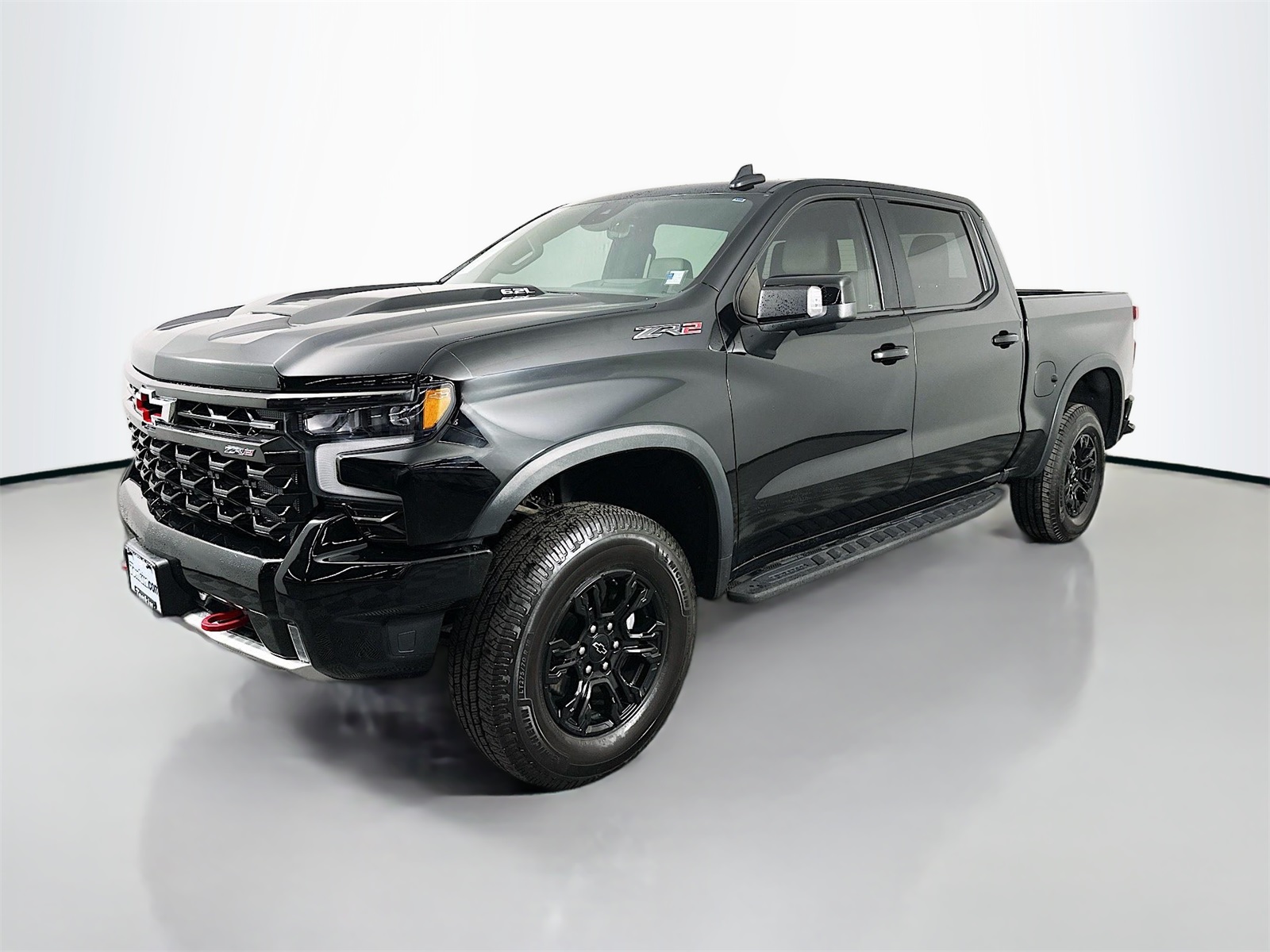 Black 2022 Chevrolet Silverado 1500 ZR2 4D Crew Cab EcoTec3 6.2L V8 10-Speed Automatic 4WD 10-Speed Automatic, 4WD, Jet Black/Graystone Leather, 10-Way Power Driver Seat w/Lumbar, 10-Way Power Passenger Seat Adjuster w/Lumbar, 12.3" Multicolor Reconfigurable Digital Display, 120-Volt Bed Mounted Power Outlet, 120-Volt Instrument Panel Power Outlet, 15" Diagonal Multicolor Head-Up Display, 170 Amp Alternator, 2 USB Data Ports, 2nd Row Heated Outboard Seats, 7 Speakers, Adaptive Cruise Control, All-Weather Floor Liner (LPO), AM/FM radio: SiriusXM with 360L, Apple CarPlay/Android Auto, Auto-dimming door mirrors, Auto-Dimming Inside Rear-View Mirror, Auto-dimming Rear-View mirror, Auto-Locking Rear Differential, Automatic Emergency Braking, Back Up Camera, Bed View Camera, Blind Spot, BlueTooth, Bluetooth® For Phone, Chevrolet Connected Access Capable, Chevytec Spray-On Black Bedliner, Color-Keyed Carpeting Floor Covering, Compass, Deep-Tinted Glass, Driver door bin, Driver Memory, Driver vanity mirror, Dual Exhaust, Dual Rear USB Ports (Charge Only), Electric Rear-Window Defogger, Electrical Steering Column Lock, Electronic Cruise Control, Electronic Transmission Range Selector Shifter, EZ Lift Power Lock & Release Tailgate, Floor Mounted Center Console, Following Distance Indicator, Forward Collision Alert, Front LED Fog Lamps, Front License Plate Kit, Front Pedestrian Braking, Front Rainsensing Wipers, Front reading lights, Garage door transmitter, HD Surround Vision, Heated door mirrors, Heated Driver & Front Outboard Passenger Seats, Heated Seats, Heated Steering Wheel, Heavy-Duty Air Filter, High Gloss Black Mirror Caps, Hill Descent Control, Hitch Guidance, Hitch Guidance w/Hitch View, Integrated Trailer Brake Controller, IntelliBeam Automatic High Beam On/Off, Keyless Entry, Keyless Open & Start, Leather Wrapped Steering Wheel, LED Cargo Area Lighting, Manual Tilt/Telescoping Steering Column, Multi-Flex Tailgate, Off-Road High Clearance Steps (LPO), OnStar & Chevrolet Connected Services Capable, Outside Heated Power-Adjustable Mirrors, Performance Red Recovery Hooks, Perimeter Lighting, Power door mirrors, Power Front Passenger Windows w/Express Up/Down, Power Front Windows w/Driver Express Up/Down, Power Rear Windows w/Express Down, Power Sliding Rear Window w/Rear Defogger, Power Tilt & Telescoping Steering Column, Preferred Equipment Group 3LT, Premium audio system: Chevrolet Infotainment 3 Premium, Premium Bose 7-Speaker Sound System, Radio data system, Radio: Chevrolet Infotainment 3 Premium System, SiriusXM w/360L, Standard Tailgate, Steering Wheel Audio Controls, Technology Package, Theft Deterrent System (Unauthorized Entry), Trailer Camera Provisions, Trailer Side Blind Zone Alert, Trailering App, Trailering Package, Up-Level Rear Seat w/Storage Package, Ventilated Driver & Front Passenger Seats.