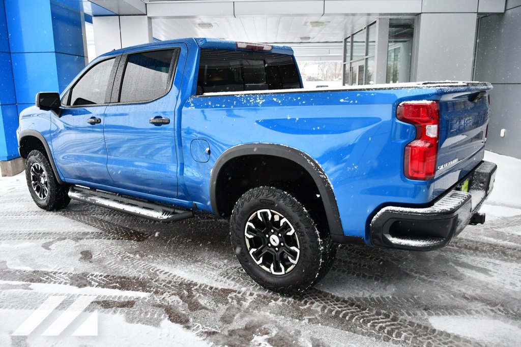 Recent Arrival! Clean Carfax. Carfax One-Owner. One owner, local trade, no accidents, clean Carfax, moonroof / sunroof, trailer tow, back-up camera, heated seats, running boards, bedliner, heated rear seats. 2022 Chevrolet Silverado 1500 ZR2 Glacier Blue Metallic 4WD 10-Speed Automatic EcoTec3 6.2L V8 Odometer is 16270 miles below market average!