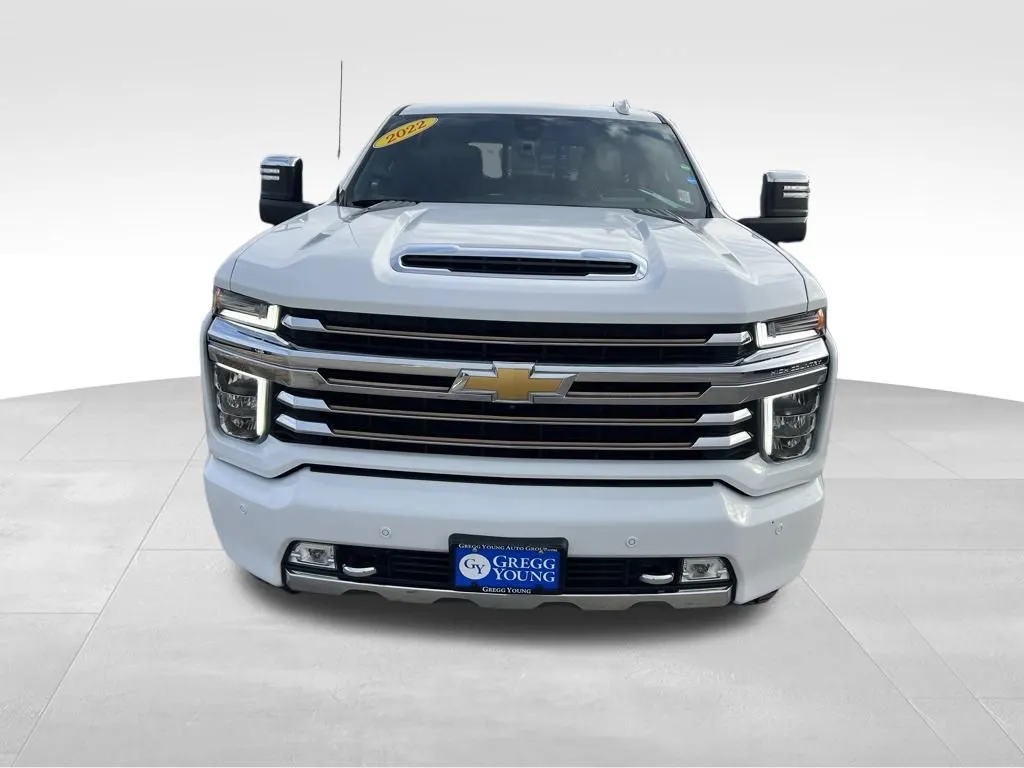 Discover the 2022 Chevrolet Silverado 2500HD High Country, a used pickup truck that combines rugged durability with modern luxury. With only 46,040 miles on the odometer, this Summit White beauty is powered by a robust 6.6-liter turbo diesel V8 producing 445 horsepower and 910 lb-ft of torque, ensuring exceptional towing and hauling capabilities. Its 10-speed automatic transmission and 4WD drivetrain deliver smooth, confident performance in any environment. Inside, you'll find a Jet Black interior with heated and rear heated seats, memory seats, and keyless entry, offering comfort for both driver and passengers. The truck is loaded with advanced technology, including Apple CarPlay, Android Auto, Bluetooth, a premium audio system, navigation, satellite radio, and a Wi-Fi hotspot, making every drive enjoyable and connected. Safety and convenience are prioritized with features like a backup camera, blind spot monitor, cross traffic alert, push start, and wireless phone charging, making this Silverado a versatile choice for work or leisure. This Silverado 2500HD also boasts a suite of safety and security features to protect you and your family. It includes a rear seat reminder to prevent accidental leaving behind, front and rear parking sensors for easy maneuvering, and four-wheel ABS for optimal braking control. The vehicle is equipped with power door locks featuring anti-lockout and auto-locking functions, a programmable safety key for added security, and an electronic parking brake with auto-off capability. These features work together to enhance confidence behind the wheel, whether in urban settings or rugged terrains. Equipped with an 8-inch infotainment touchscreen, this Silverado offers seamless smart device app compatibility. Performance is at the heart of this Silverado.