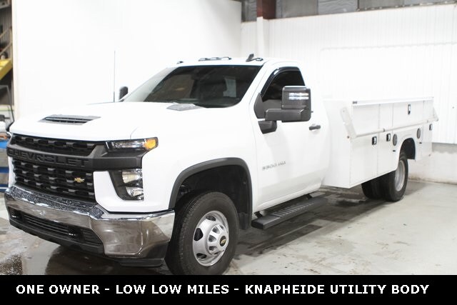 Recent Arrival! 2022 Chevrolet Silverado 3500HD Work Truck 2D Standard Cab RWD Summit White. One owner, low low miles, 11' Knapheide utility body ready work truck, 6.6L gas V8, 6-Speed Automatic, dual rear wheels. Located in Aledo Illinois, Essig Motors has been family owned and operated since 1989. Owner Jim Essig's experience in the auto industry began in 1975 working for his father's dealership in Washington, Illinois. We are honored to serve Mercer county, surrounding areas, and our growing online community with new, certified pre-owned, pre-owned, and also new and pre-owned commercial vehicles. Essig Motors offers an exceptional selection of new cars, trucks and SUVs including Chevrolet, GMC, Chrysler, Jeep, Dodge and Ram. Our knowledgeable, friendly sales staff is here to answer your questions and help you find the vehicle that meets your needs today!
