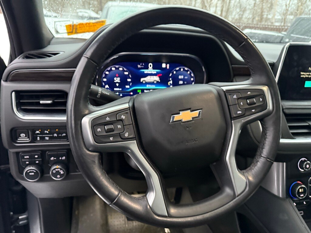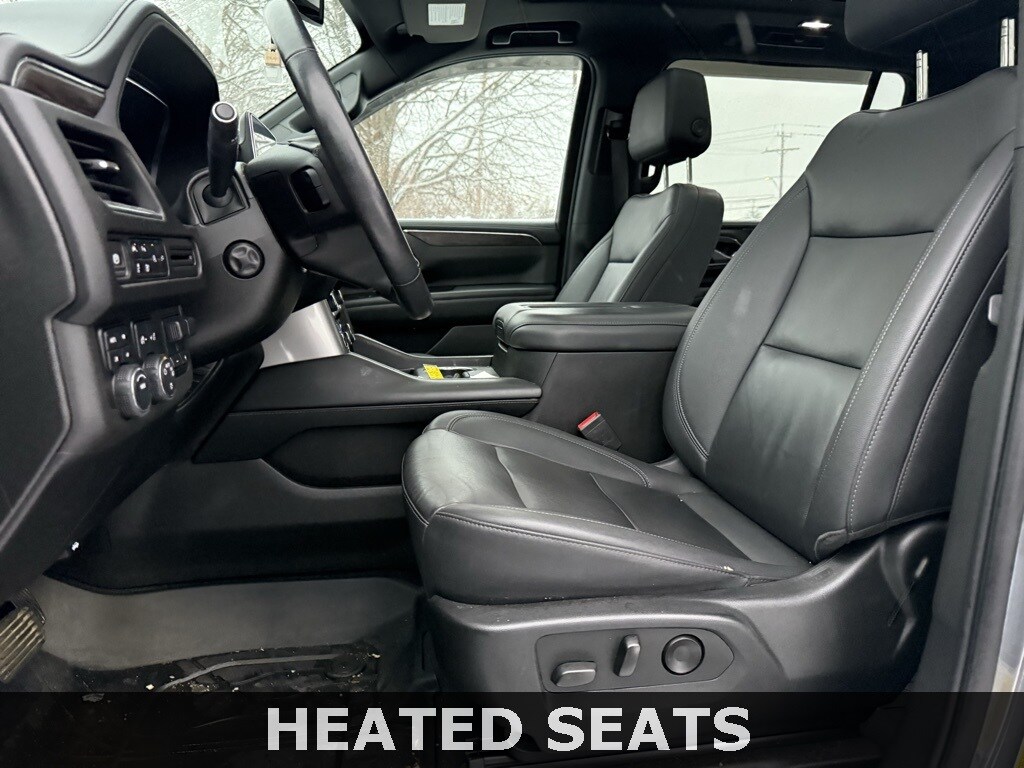 Professionally Detailed, new oil & filter change, 10-way power driver & passenger seat adjusters, 1st & 2nd row color-keyed carpeted floor mats, 2-speed active electronic AutoTrac transfer case, 2nd row power release 60/40 split-folding bench seat, 3rd row power-folding split-bench, Advanced Trailering Package, Auto-dimming inside rear-view mirror, Automatic stop/start, Bose 9-speaker stereo audio system feature, bright front & rear door sill plates, color-keyed carpeting floor covering, driver & front outboard passenger airbags, Driver Alert Package, dual-pane power panoramic sunroof, enhanced driver information center, extra capacity cooling system, floor console w/storage area, front & rear park assist, hands-free rear power programmable liftgate, HD surround vision, heated 2nd row outboard seats, heated driver & front passenger seats, heated steering wheel, hitch guidance w/hitch view, Infotainment display, integrated trailer brake controller, lane change alert w/side blind zone alert, leather-wrapped steering wheel, LED daytime running lamps, License Plate Front Mounting Package, LT Signature Package, Luxury Package, Max Trailering Package, memory settings for driver, memory settings for passenger, outside heated power-adjustable mirrors, power tilt & telescopic steering column, Preferred Equipment Group 1LT, rear cross traffic alert, rear pedestrian alert, Remote Start, SiriusXM Radio w/360L, smart trailer integration indicator, start/stop system disable button, Universal Home Remote, wireless charging. CARFAX One-Owner. 2022 Chevrolet Suburban LT Satin Steel Metallic.