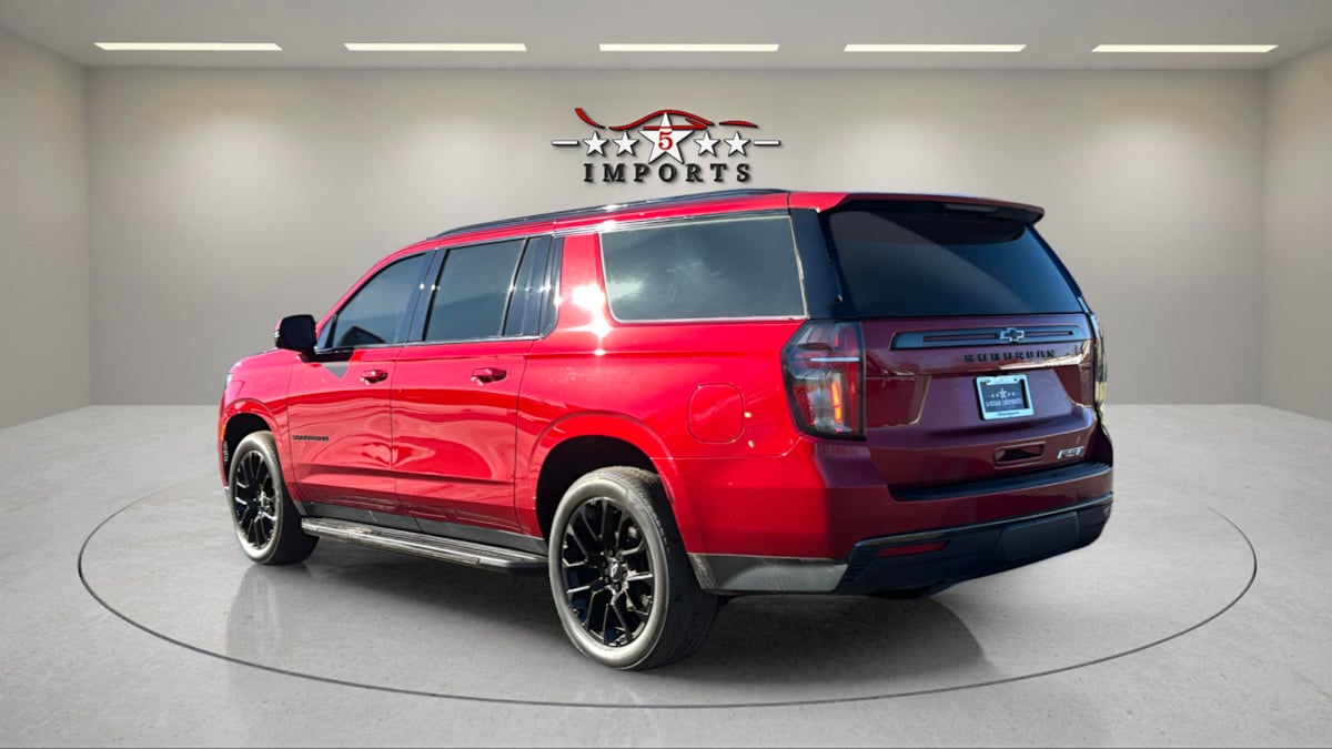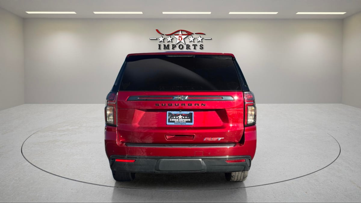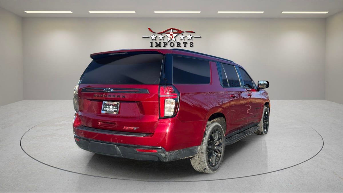 Our spirited One Owner 2022 Chevrolet Suburban RST 4WD is spacious and audacious in Cherry Red Tintcoat! Motivated by a 5.3 Liter V8 serving up 355hp matched to a 10 Speed Automatic transmission for mighty muscle. That helps you pass and pull with ease, and this Four Wheel Drive SUV also sees nearly 19mpg on the highway. Dark-themed good looks are standard for our Suburban with 20-inch gloss-black wheels, matching exterior accents, black roof rails, and black assist steps to set off LED lighting, heated power mirrors, and a hands-free liftgate. You'll find a comfortable layout for eight people in our RST cabin that's as stylish as it is versatile. Exclusive RST power front heated leather seats set the tone and complement flexible second and third rows, a leather-wrapped heated steering wheel, tri-zone automatic climate control, keyless access/ignition, and remote start. There are innovative technologies, too, anchored by the Google Assistant with a 10.2-inch touchscreen, voice recognition, wireless Android Auto/Apple CarPlay, WiFi compatibility, Bluetooth, wireless charging, and Bose audio. Protecting your family is a top priority for Chevrolet, which does its part by providing intelligent assistance from an HD backup camera, automatic braking, hill-start assistance, forward-collision warning, lane-keeping assistance, and more. Adventure awaits, and our Suburban RST is ready to go! Save this Page and Call for Availability. We Know You Will Enjoy Your 5 Star Imports Test Drive Towards Ownership!