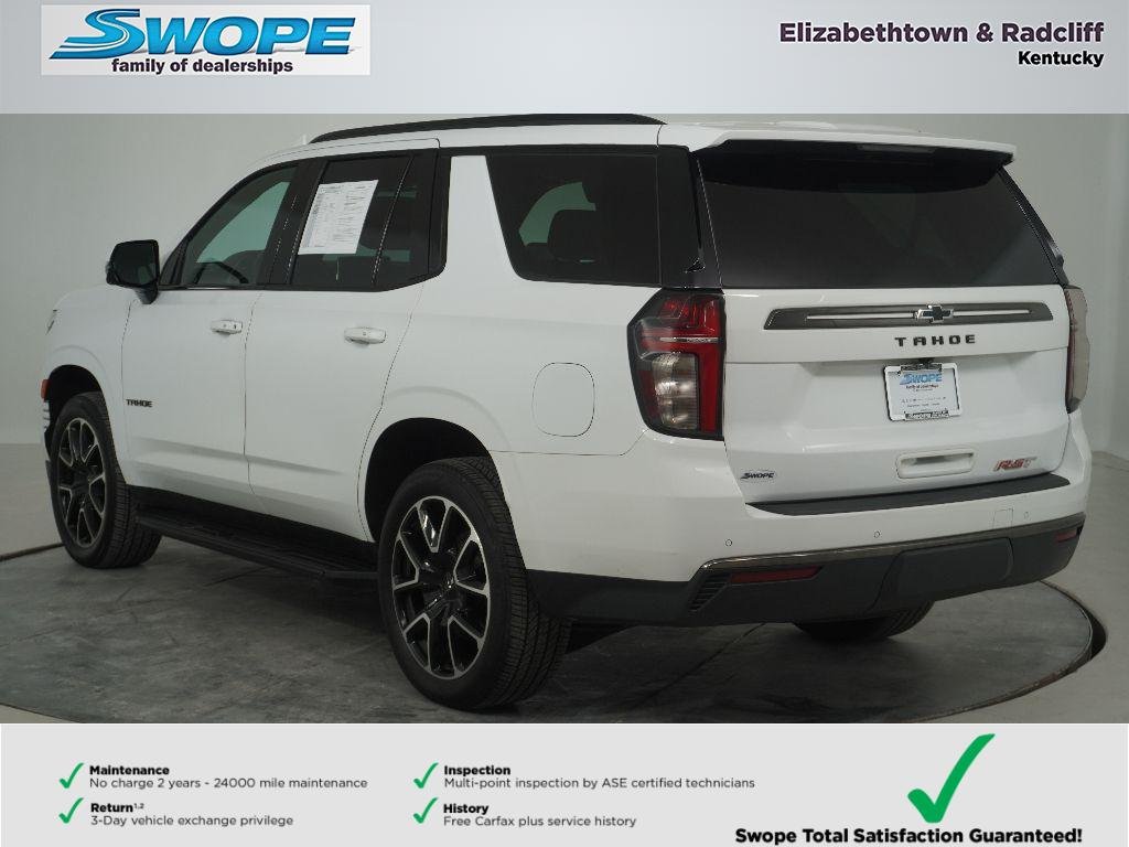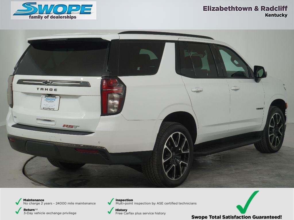 2022 Chevrolet Tahoe RST 4WD — V8 5.3L Gasoline, located in Elizabethtown, KY. This rugged, stylish SUV blends powerful performance with modern tech and comfort. The V8 5.3L delivers confident towing and smooth highway power, while four-wheel drive ensures capability in rain, snow, or off-road conditions. The RST trim adds athletic exterior styling, upgraded wheels, and aggressive stance for a commanding on-road presence. Inside, enjoy convenience features such as Remote Start for effortless climate control, Apple CarPlay for seamless smartphone integration, XM Radio for endless entertainment, and a Back-Up Camera for safer parking and maneuvering. The Heated Steering Wheel enhances comfort on cold mornings, and spacious seating provides room for family and gear. Meticulously inspected and priced to move, this Chevrolet Tahoe RST offers exceptional value and the best price in the Elizabethtown, KY area — an ideal choice for buyers seeking performance, comfort, and modern connectivity without premium pricing. Financing options available for qualified buyers. Schedule a test drive today to experience the V8 power, refined interior, and confident 4WD capability firsthand. Act now — this competitively priced 2022 Chevrolet Tahoe RST won't last long at this value.