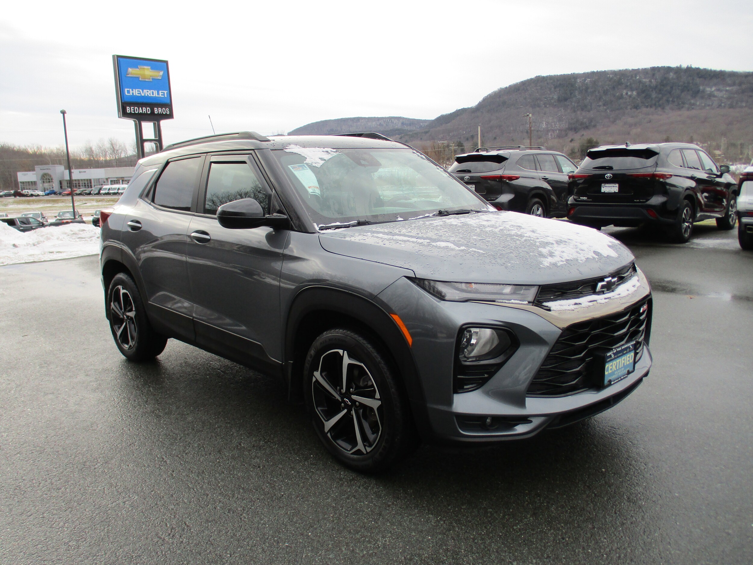 IIHS Top Safety Pick+. Scores 30 Highway MPG and 26 City MPG! Carfax One-Owner Vehicle. Dealer Certified Pre-Owned. This Chevrolet Trailblazer boasts a 1.3L L3 engine powering this automatic transmission. Transmission, 9-speed automatic (STD), seats, front bucket (STD), Satin Steel Metallic. According to Carfax's history report: Carfax One-Owner Vehicle, No Damage Reported, No Accidents Reported, 8 Service Records. Stop by today. Live a little- stop by Bedard Bros. Chrysler Jeep Dodge Ram located at 452 South State Rd, Cheshire, MA 01225 to make this car yours today!
