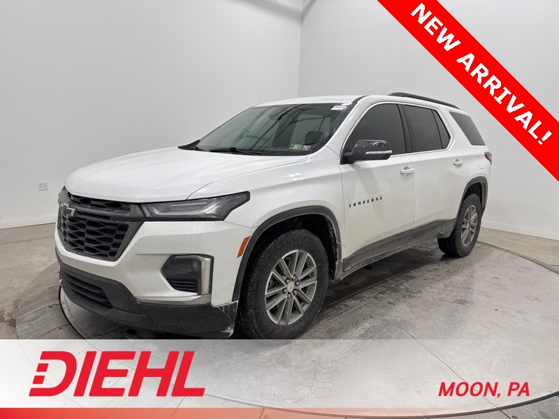 AWD. Recent Arrival! Summit White 2022 Chevrolet Traverse LT 1LT 3.6L V6 SIDI VVT 9-Speed Automatic Clean CARFAX. This 2022 Chevrolet Traverse LT Cloth 1LT is the kind of SUV that makes family life, road trips, and daily errands feel a whole lot more organized and a lot less chaotic. Finished in Summit White and powered by a smooth 3.6L V6 paired with a 9 speed automatic transmission, this Traverse delivers confident acceleration and all wheel drive capability that keeps you steady when the weather decides to misbehave. On the road, the Traverse LT feels composed and comfortable, with features like cruise control, automatic headlights, and a driver mode selector that adapts to your needs. Safety is clearly a priority here, thanks to front collision warning, front collision mitigation, lane departure warning, lane keeping assist, blind spot monitoring, daytime running lights, and automatic high beams working quietly in the background to keep you on track. Inside, the cabin is built for real life. The LT Cloth interior offers comfortable seating for up to seven with second row captains chairs and a third row seat ready for passengers or extra cargo. A power driver seat with adjustable lumbar support, leather wrapped steering wheel, and multi zone climate control make long drives far more enjoyable. Remote engine start, keyless entry, and power door locks add everyday convenience, while the touchscreen infotainment system with Bluetooth, smart device integration, satellite radio capability, and a backup camera keeps you connected and confident. This 2022 Chevrolet Traverse LT Cloth 1LT also stands out with aluminum wheels, privacy glass, heated mirrors with integrated turn signals, and the added style of the Blackout Package accents that give it a sharper, more modern look. If you're searching for a midsize SUV that balances space, safety, and comfort without feeling oversized or overcomplicated, this Traverse checks all the right boxes. Stop by Diehl of Moon and see why the 2022 Chevrolet Traverse LT continues to be a favorite for families who want room to grow and confidence to go wherever the road leads.