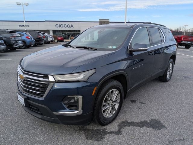 Discover the perfect balance of style, capability, and convenience in the 2022 Chevrolet Traverse LT Leather. This exceptional SUV offers a refined and spacious interior, advanced technology, and impressive performance, making it the ideal choice for your next family adventure. Featuring a striking Blue exterior, the Traverse LT Leather boasts a commanding presence on the road. Its bold design is complemented by a host of premium features, including front license plate bracket mounting package, preferred equipment group 3LT, trailering equipment, Chevrolet Infotainment 3 Plus System with 6-speaker audio, automatic dual-zone climate control, power liftgate, heated front seats, leather-appointed seat trim, and 18-inch bright silver-gold aluminum wheels. Powered by a robust 3.6 L V6 engine and equipped with All-Wheel Drive, the Traverse LT Leather delivers a confident and responsive driving experience. With an impressive fuel efficiency of 17 MPG in the city and 25 miles on the highway, this SUV strikes the perfect balance between performance and practicality.