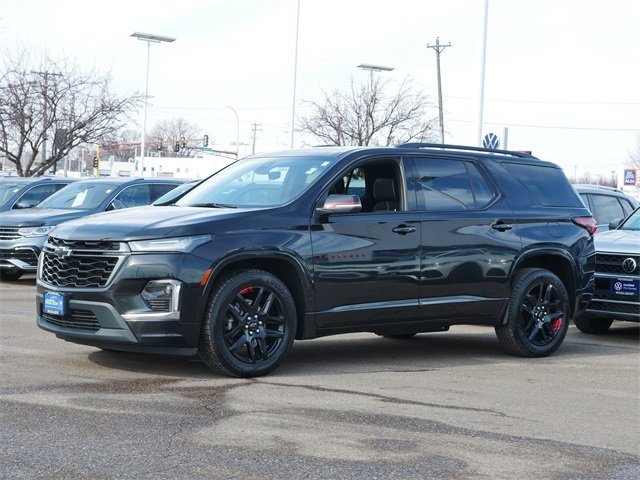 AWD, all wheel drive, Apple CarPlay, Android Auto, rearview camera system, Bluetooth, heated seats, heated steering wheel, moonroof, sunroof, panoramic moon roof, 3rd row seating, backup camera, leather seats, remote start, sunroof/moonroof, premium audio package. Clean CARFAX. Mosaic Black Metallic 2022 Chevrolet Traverse Premier AWD 3.6L V6 SIDI VVT 9-Speed Automatic. Recent arrival! Priced below KBB Fair Purchase Price! Our Promise to You: At Volkswagen of Inver Grove, we use third party software daily to compare our vehicle pricing to all other dealer and private party listings on the internet in the greater Minneapolis St. Paul Market area. We will post one low price, plain and simple-always. At Volkswagen of Inver Grove you get a great valued priced vehicle right up front! Additionally, we recondition our vehicles to the highest standards. We are committed to making your car buying experience easy and earning your business for life! Please call us or email us to schedule a test drive today! We sell and service all makes and models of pre-owned, used vehicles, used cars, used trucks, used sport utility vehicles.